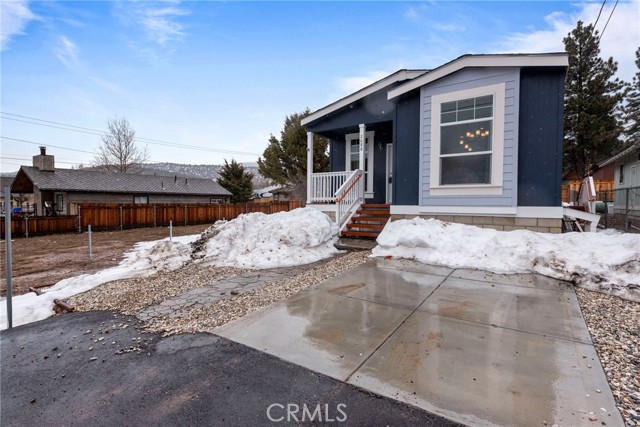 This brand new 3 bedroom 2 bathroom manufactured home is situated in the Erwin Lake area of Big Bear. Just a short walk away from Erwin Lake Park and dog park, this home is the perfect base for outdoor enthusiasts. Featuring upgraded 12 inch eaves, 9 ft ceilings, and stainless steel appliances and quartz counter tops. This home boasts a modern and luxurious design. With a fully furnished interior (furnishings negotiable) and partially fenced lot, this home provides a comfortable and inviting retreat for guests. With all that Big Bear has to offer just a short drive away, including skiing hiking, and boating, this home is the perfect combination of convenience and luxury. This property has an active STR license so making it your own STR would be a piece of cake. Buyer & buyers agent are solely responsible for verifying any and all information provided.