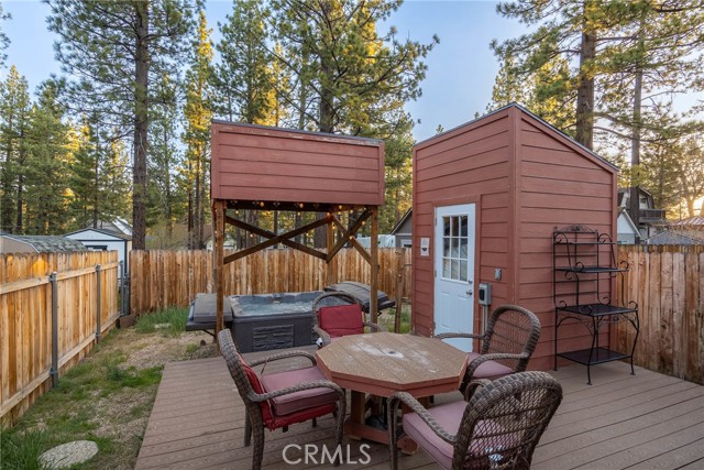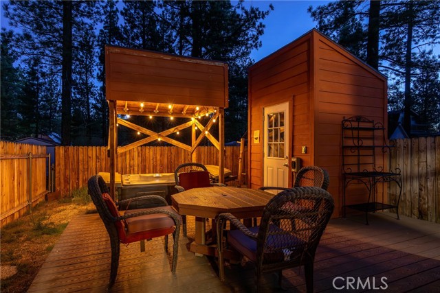 Nestled in a serene mountain enclave, this charming cabin beckons with its cozy allure. Boasting level entry and a spacious deck complete with a rejuvenating spa, it offers the perfect retreat. The centerpiece is a grand rock fireplace, adding warmth and character to the inviting interior. With ample sleeping space and an additional lot totaling 5,000 sqft, possibilities abound. Situated in a tranquil neighborhood, yet just minutes from Big Bear's vibrant attractions, it strikes the ideal balance of seclusion and convenience. Experience the quintessential mountain lifestyle in this quaint abode, where every moment promises relaxation and adventure.
