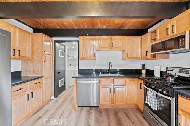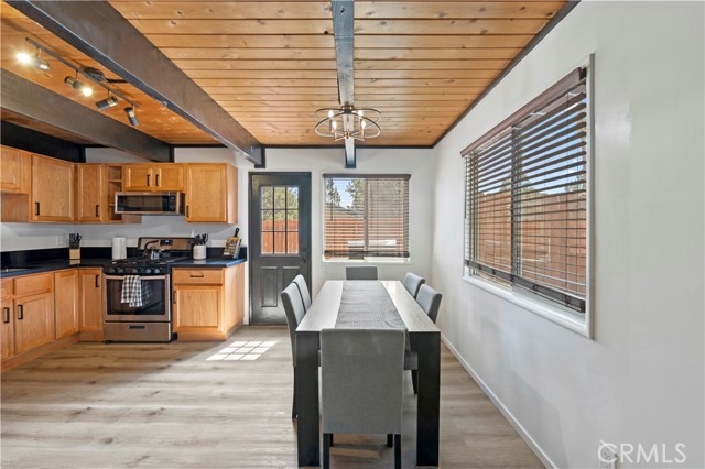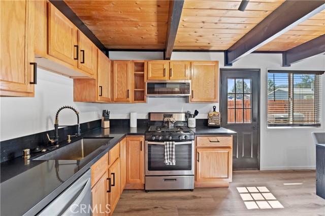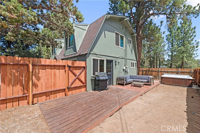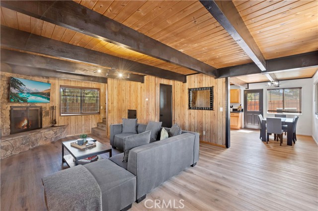 Beautifully updated home on a corner lot. Features open floor plan, living room with wood beam ceilings and fireplace, large updated kitchen, dining area, good size guest bedrooms, updated bathrooms and ton of yard space with the deck and jacuzzi tub to entertain. Separate room for laundry and storage. Furnishings and kitchenware may be included with the sale to make it a turnkey rental or vacation home.