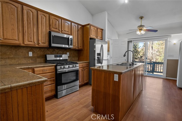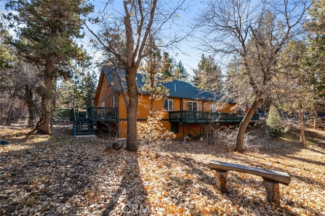 Well Maintained, log sided home on a large corner lot! This 3 bedroom, 2 bath home features vaulted ceilings in the living room and a wood burning stove. The kitchen is open to the living room with room to gather with a bar, island and dining area. Granite tile counters and stainless appliances are waiting for you. Down the hall you will find 2 bedrooms and a full bath as well as the primary suite. Primary has walk in closet, dual vanities and slider to access the back deck. Outside this home provides so much. The expansive composite decking includes a front covered deck, rear deck and a side deck to overlook the large oak trees and fenced corner lot. Double gate on side yard creates even more possibilities with room to park an RV, boat or possibly an ADU. With an attached 2 car garage and 12,500 sqft of land, this property has so much to offer.