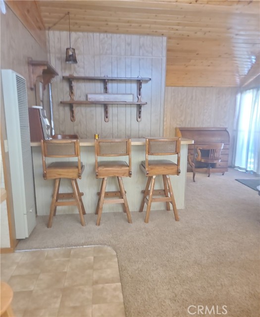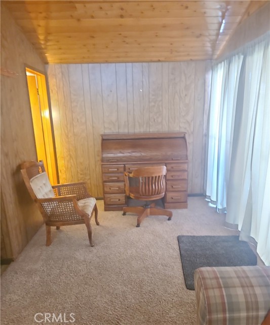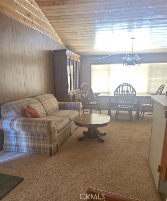 Come see this beautiful 2 Bedroom 2-bathroom, 1300 square feet single family home. Breakfast counter in kitchen with lots of cabinets and laundry hook ups off kitchen. Wood burning fireplace in living room with magnificent stone face. Dining room is open to den with private bar. Front porch for enjoying the mountain air and rustic setting. Large lot with many trees and carport with room for two cars attached to the home. This home is turnkey and ready for you to enjoy the playground and relaxation that exists in the San Bernardino mountains. Come and make this your home.