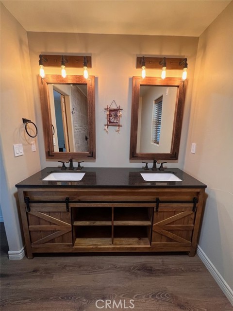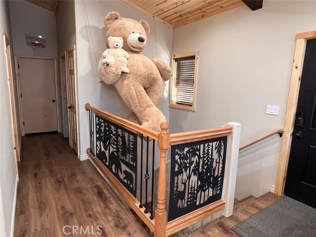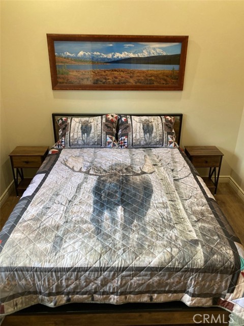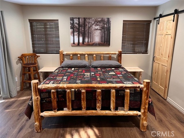 Newly built custom home in a desirable neighborhood of Big Bear City. Just steps from peaceful forest hiking trails and a 10 minute drive to ski resorts and the Village. Must see to appreciate the special touches inside, including a custom decorative stair railing and wood slab bath countertop with tree-trunk sink. 3 full bathrooms all with tiled showers. Downstairs master bedroom has a jetted tub and slider opening to a spacious covered deck. Cozy up to the wood-burning fireplace in the open living room / kitchen floor plan with pine ceiling. The elevated upper deck offers tranquil pine tree views and a gas bbq connection. All decking is durable and low-maintenance Trex material. 2-car garage has high-quality epoxy floor coating. All furnishings are negotiable so your new home could be enjoyed immediately or rent-ready!
