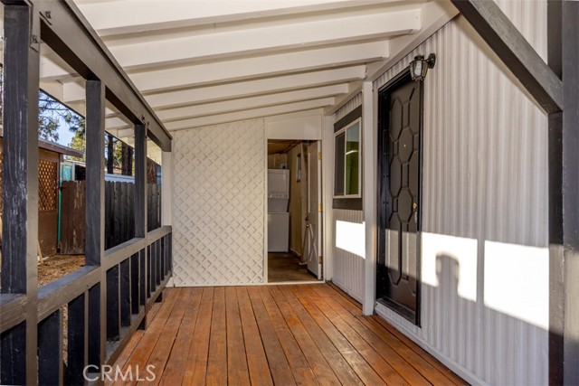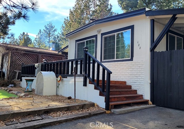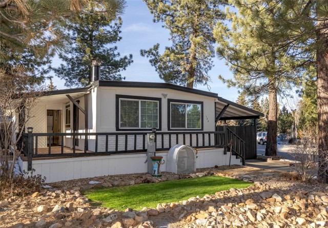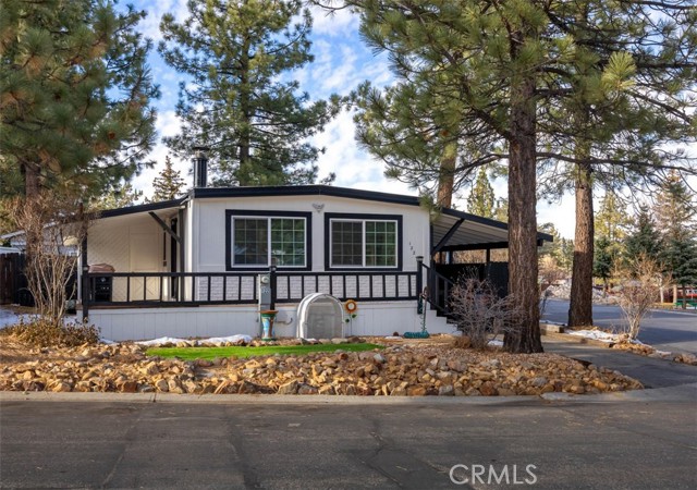 Beautiful, floor to ceiling remodel completed in 2022, inside and out. This attractive, double wide home has new drywall walls and ceilings throughout, wood-style vinyl flooring, dual pane windows, recessed lighting, fully upgraded kitchen with new appliances and upgraded bathroom. Top it off with a new roof, refinished deck, freshly painted exterior and interior, and the entire home is heavily insulated throughout. Separate 100 sq.ft. laundry/storage room off entry deck, not included in the living sq.ft., with access to the fenced yard. Nicely landscaped, large corner lot offers 3 parking spaces - 2 in the enclosed carport/driveway area and 1 on the side with an entry gate to back yard. 2 large sheds located in the covered walkway going to back yard and gated carport. Located in Whispering Pines Estates MHP where you own your land, this home is just steps from the park's clubhouse, offering a large dining hall and community room, huge indoor spa, rec room, workout room and laundry room. Enjoy the mountain view on your sunny front deck or walk across the street to relax at the well-treed park area, or take a dip in the park's outdoor swimming pool. Even has a play area for the young ones. On-site storage area available for RVs and boats. This home is a must see to appreciate all the amenities!