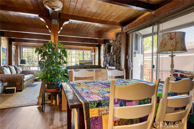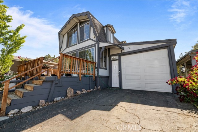 Here is your opportunity to own a large home in the Whispering Pines park where you own your land while having access to the community pool, spa, common area and clubhouse. Featuring 3 bedrooms, 2 bathrooms and 1,766 sqft this home is unique for the park. When you walk in you will notice the beamed ceilings, wood burning fireplace and large windows to enjoy the view of the mature trees. The open floor plan includes a dining area and updated kitchen! Before heading upstairs, you will pass a full bathroom and laundry room. Upstairs you will find the primary room with bathroom as well as a 2nd bedroom. The 3rd bedroom or loft area features wood details throughout, large windows and vaulted ceilings. Outside, pull into your tandem garage or enjoy the day from the large front deck wraps around to the fenced back yard. The home has been upgraded over the years and features energy efficient central forced air, dual pane windows and stainless steel appliances. Take a look at all this home offers as well as the many amenities of the desirable Whispering Pines Estates.