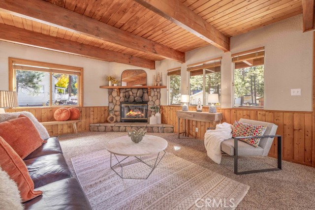 InteriorFeatures Information | Beamed Ceilings, Living Room Deck Attached, Wainscoting |