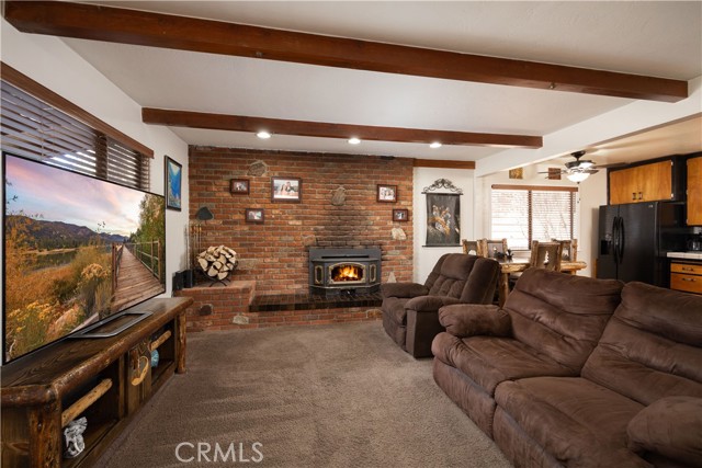 Seeking a pristine cabin exuding the inviting ambiance of Big Bear? Your search ends here! Nestled on a spacious, fully fenced backyard and dog run in Big Bear City, this wonderful 3-bedroom home is conveniently located near all that Big Bear has to offer. Yet, it provides a serene escape from the hustle and bustle, allowing you to enjoy the tranquility of the San Bernardino mountains. Featuring charming wood-beamed ceilings in the living room, a stunning brick fireplace, updated bathroom, an expansive master bedroom AND close to all areas of Big Bear... Don't miss out—call today to arrange your viewing! Newer wall heater, water heater, washer and dryer.