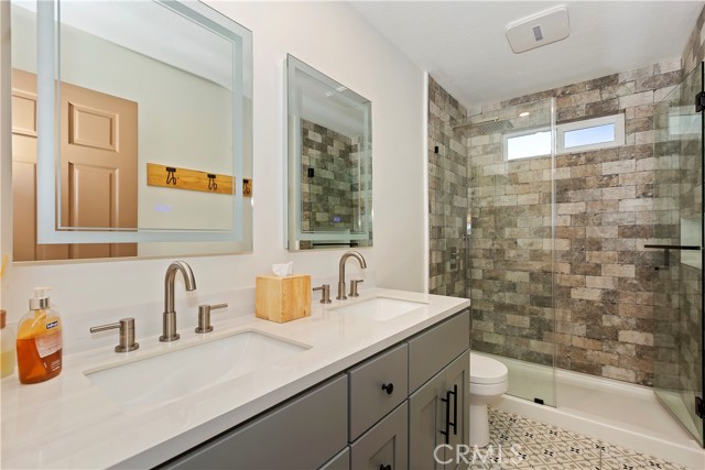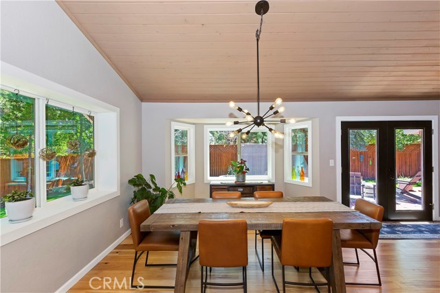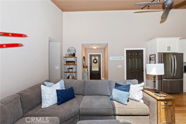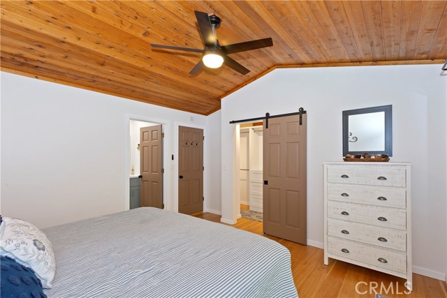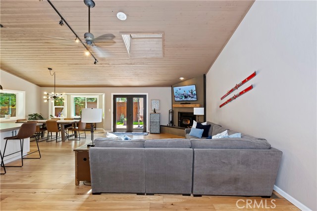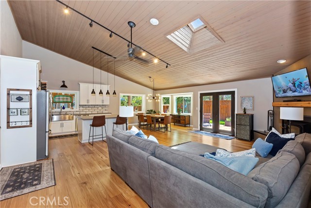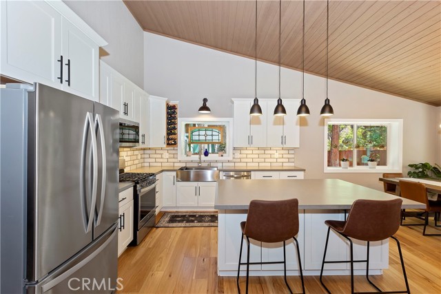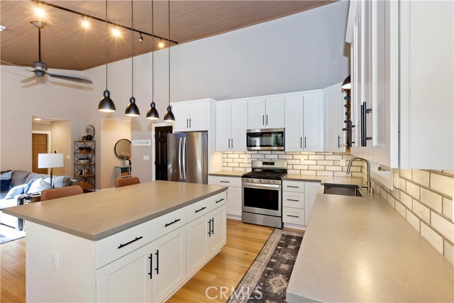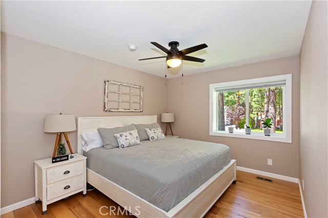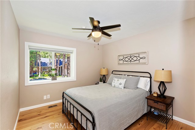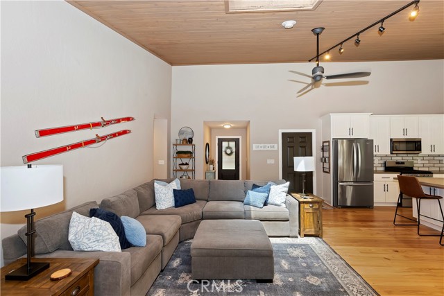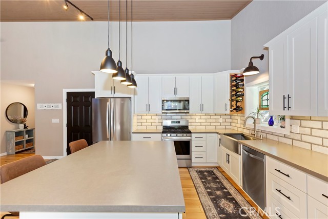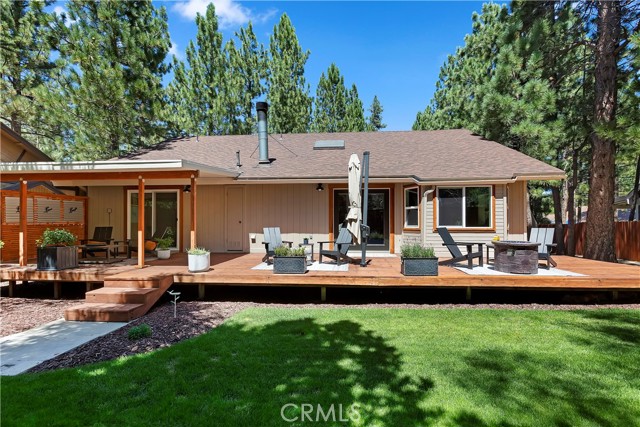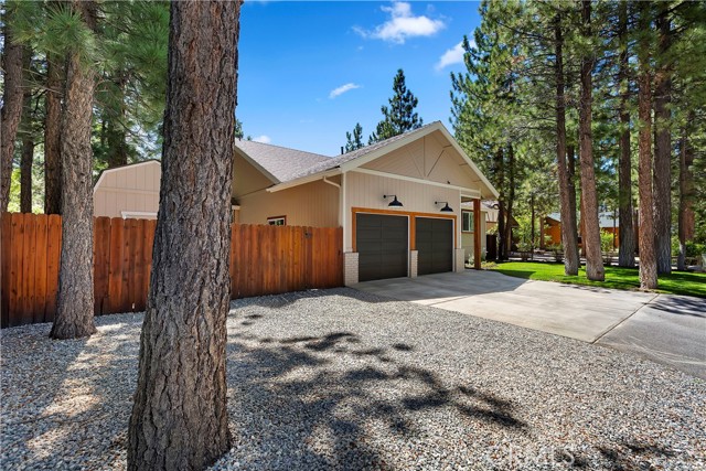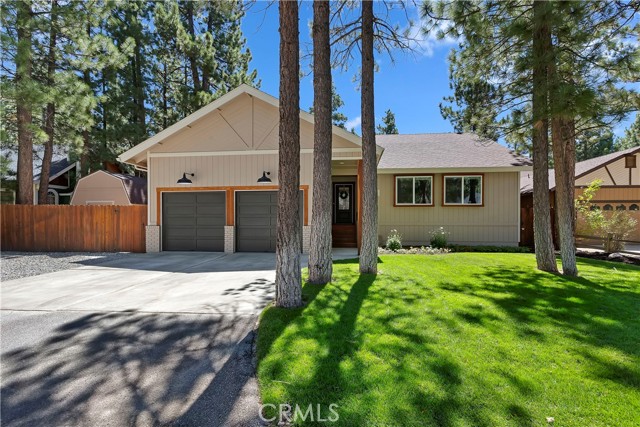 MODERN INDUSTRIAL MEETS MOUNTAIN CRAFTSMAN IN THIS ELEGANTLY REMODELED HOME. NESTLED WITHIN THE SOUGHT-AFTER COMMUNITY OF FOREST SPRINGS ESTATES IN BIG BEAR CITY. THIS HOME BOASTS VAULTED CEDAR CEILINGS, TECSUN HAND SCRAPED HICKORY FLOORING THROUGHOUT, OPEN FLOORPLAN, AC AND HEATING OPERATED WITH SMART CLIMATE CONTROL BY ECOBEE, QUARTZ KITCHEN COUNTERS WITH FARM HOUSE KITCHEN SINK, SOFT CLOSE CABINETS, NEW DUAL PANE WINDOWS, SOLID WOOD INTERIOR DOORS AND KING SIZE BEDROOMS. PRIMARY BEDROOM AND SECOND BEDROOM FEATURE CUSTOM WALK-IN CLOSETS. BACK YARD SHOWCASES EIGHT FOOT PRIVACY FENCING AND EXPANSIVE DECKING PROVIDING AN ENTERTAINER'S DELIGHT IN THIS BEAUTIFULY ESTABLISHED, FULLY LANDSCAPED YARD WITH SMART IRRIGATION BY B-HYVE. 10X12 TOUGH SHED FOR STORAGE NEEDS, RV/BOAT PARKING AND FINISHED OVERSIZED TWO CAR ATTACHED GARAGE. NOTHING OVERLOOKED DURING THIS EXTENSIVE RENOVATION. TOO MANY AMENITIES TO LIST, A MUST SEE.