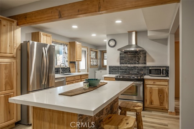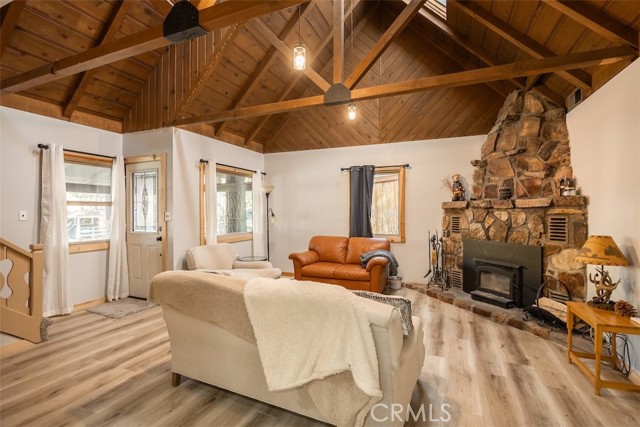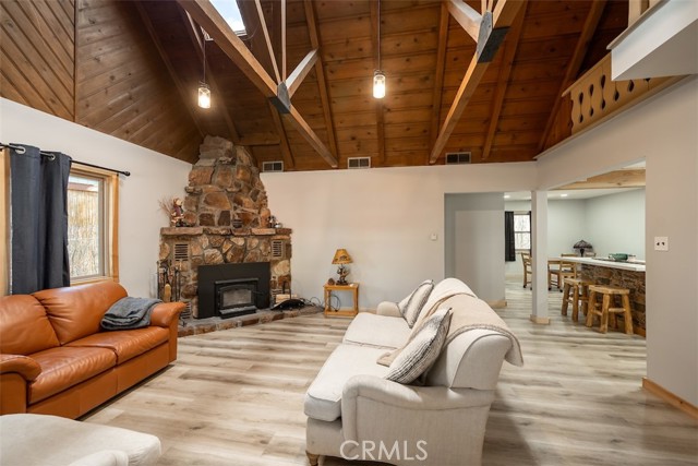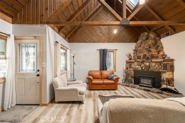 Discover a rare gem in the heart of Poet's Corner, where history and modernity meet just steps from the scenic Maple Hills Trail System. This cabin offers an exquisite blend of vintage character and contemporary convenience, making it a perfect retreat in Big Bear City. With soaring wood ceilings and thoughtfully preserved details, the home radiates warmth and charm. The spacious kitchen is designed for the culinary enthusiast, boasting granite countertops, high-end appliances, and ample storage. The home features plenty of room to park a boat or RV. Sunlight floods the inviting living areas, accentuating the cozy ambiance created by the fireplace. The serene bedrooms are finished with care, providing restful sanctuaries. Outside, the property transforms into an entertainer's dream, offering a private haven to relax or gather with friends. Located near a variety of outdoor activities, including hiking, biking, and nature walks, this home is an ideal spot for those who love to explore. Whether you're looking for a primary residence, a weekend getaway, or a lucrative Airbnb, this property offers an exceptional opportunity to enjoy the best of mountain living in Big Bear City.