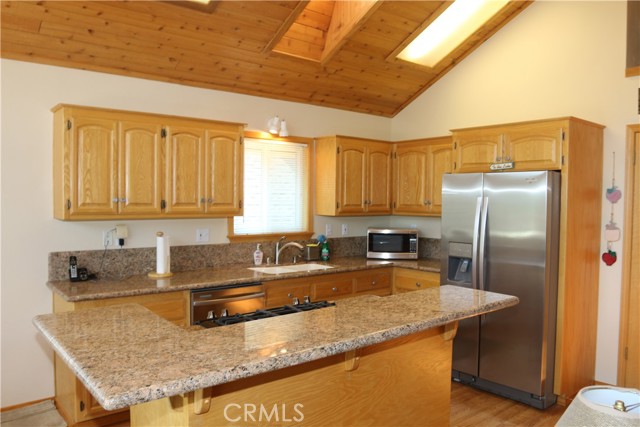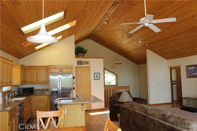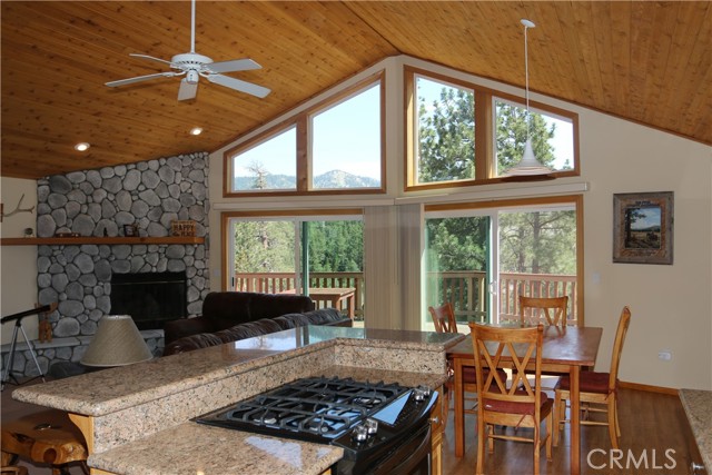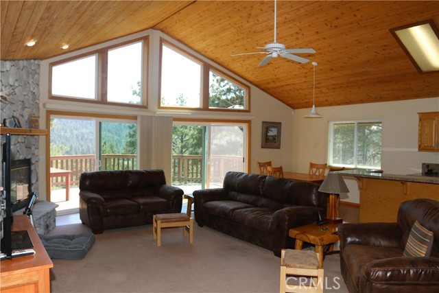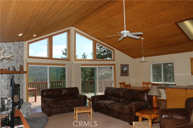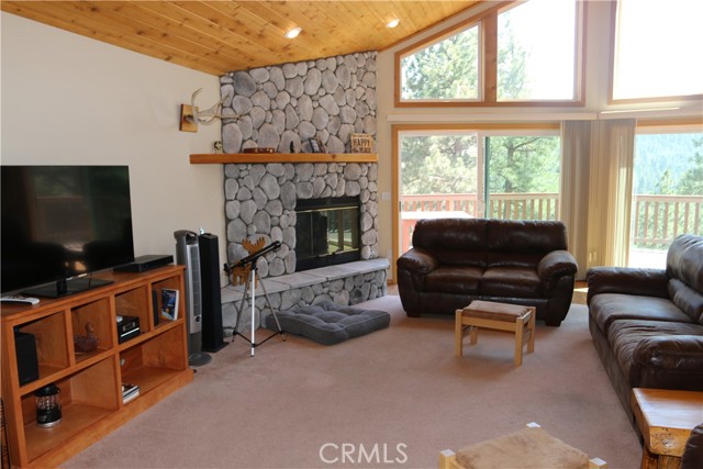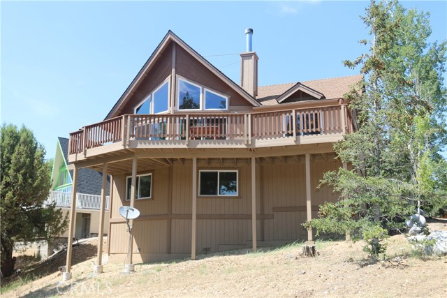 Life at the Top (Of the Hill) Owner had this Cutom Home Built by Contractor John Looney. Features Open Floor Plan with Dramatic High Ceilings Maximizing the Ski Slopes and Lake Views. Almost a quarter Acre View Lot. Open and Bright Living Area. Center Island in Kitchen. Granite Counter Tops In Kitchen and Baths. Stainless Steel Appliances. Relax in the Living Room or on the Deck Overlooking the Big Bear Valley. Watch the Beautiful Sunrise and Sunsets. Enjoy the River Rock Fireplace and watch the Snow falling in the Beautiful Winter Season. The Cul-de-sac street is quiet and Peacefull. The Yards are Professionally Landscaped with trees and Shrubs. Decomposed Granite keeps weeds away and Minimizes water Usage. Central Heating System. 2 Car Finished Garage is Detached and has a work Area. Additional Parking on Driveway. Located Near Ski Slopes , Lake and Minutes to Fine Dining and Night Life. Would be a Great Primary Home, Rental Property of Vacation Rental. Call today to view this great House.