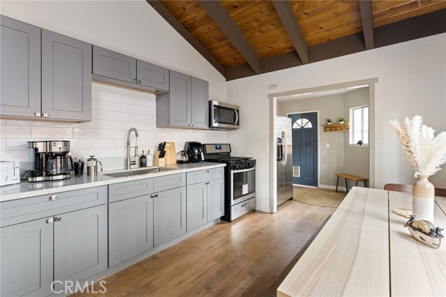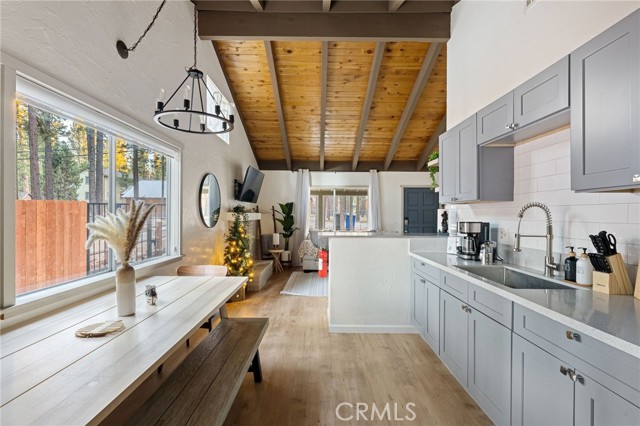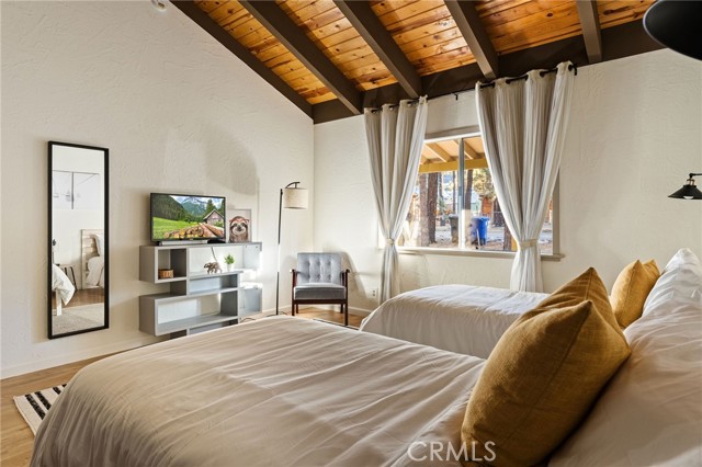Welcome to your successful income generating, freshly remodeled, and fully furnished 2 bedroom 2 bathroom cabin is ready to be your escape to the mountains! Upon entering, you’re welcomed with beautiful wood pitched beamed ceilings and laminate wood flooring has been installed throughout. Enjoy your newly built kitchen with granite countertops, shaker cabinets, and stainless steel sink. Each room is designed with comfort and space in mind. Both bathrooms have been upgraded to provide modern amenities with rainfall showers heads, stylish vanities, and designer tiles. After a long day on the slopes, hiking, or just cruising around Big Bear, sit back and relax in your spacious backyard. Your spa can seat 4 friends comfortably. Layback in your hammock looking up at the stars and beautiful pine trees that surround your property. Get the s’mores ready too and enjoy them around the outdoor fire pit. There is also a large 2 car garage with plenty of room to store your bikes, skis, snowboards, and more! Additionally, you have a driveway big enough to park your RV or multiple cars! You’re also centrally located from The Zoo, Golf Course, The Village, and Slopes and just 3 blocks away from Oktoberfest, Farmer’s Market, Big Bear Snow Play, and GoCarts. This home is ready to be your primary, vacation home, or short term rental!