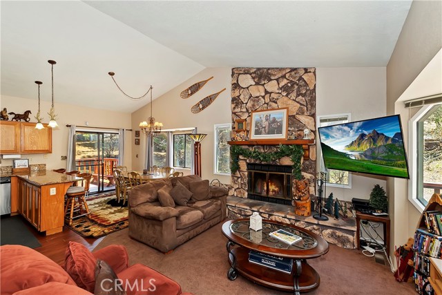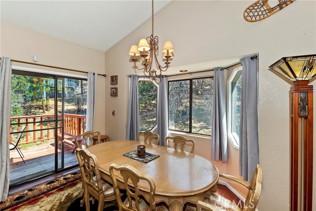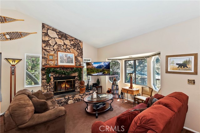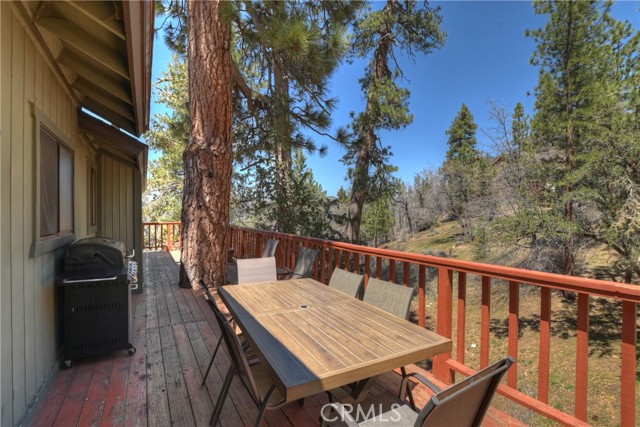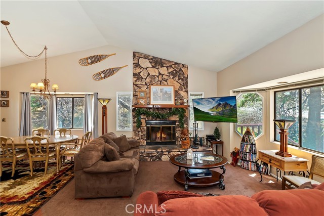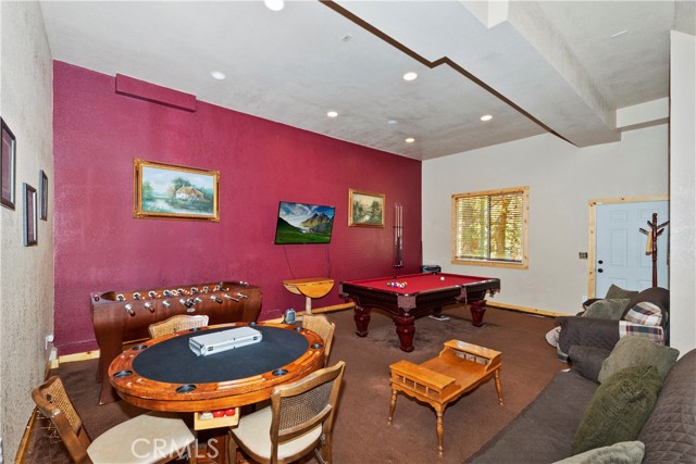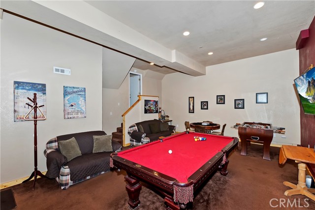 Located in the high demand Moonridge area of Big Bear. Cabin is close to all that Moonridge has to offer. The new zoo, Golf Course, Bear Mountain ski area and 8 minutes from the lake. You walk into a open floor plan that is anchored by a beautiful rock fireplace. After a day on the ski slopes or fishing on the lake you can have your family or guests sitting in the living room by the fireplace while you or other family members or guests are making dinner so you all can enjoy a dinner in the dinning room or when the weather is nice out on the deck. After dinner you can take advantage of the Game room and shoot some pool or play some cards. Game room is a non permitted garage conversion. Building sq ft is 1578 with out the game room. Game room is 480 sq. ft. Total sq ft 2,058. Very versatile cabin that is in very good condition. Backyard has a snow play and sledding area. Cabin has a history of rental income. Owners rent when they don't come up. Part time rental income 2023 over $20,000.
