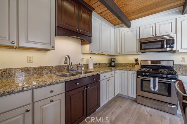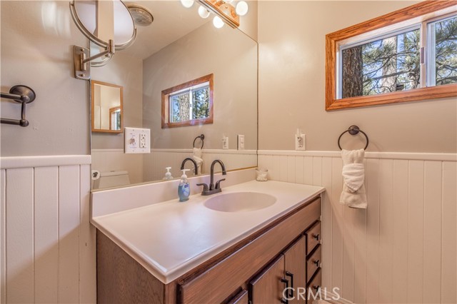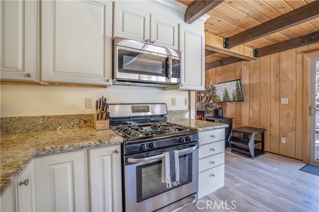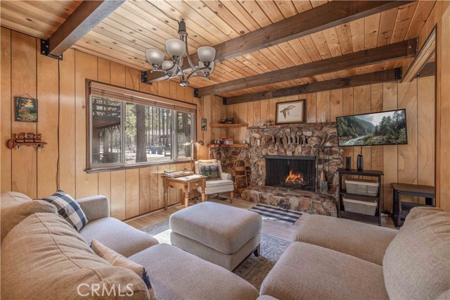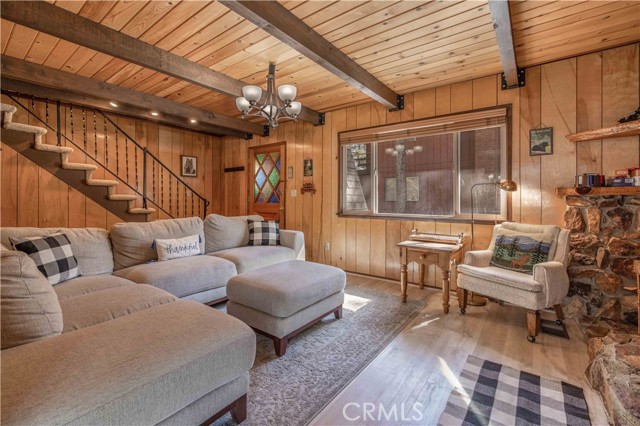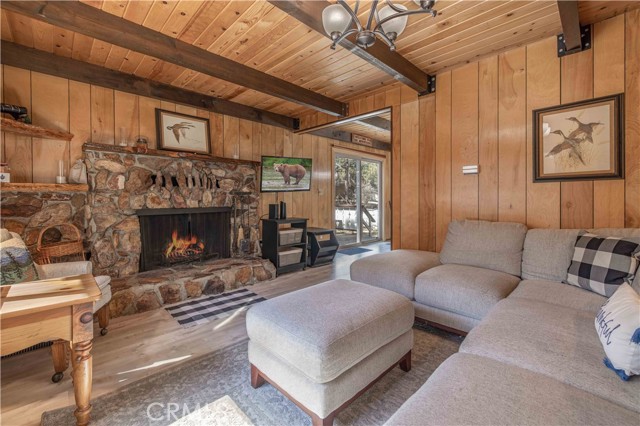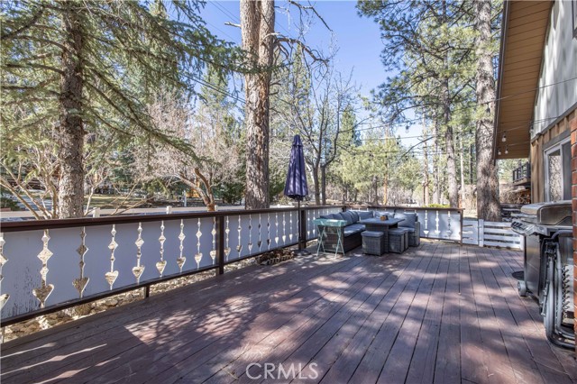 PICTURESQUE AND IMMACULATE ~ Sits on an oversized lot among the trees ~ You won't want to miss this one! Tasteful cabin feel with extensive upgrades including new flooring, dual pane windows, updated bathrooms and kitchen. Ideal layout featuring two bedrooms and bathroom downstairs, as well as two bedrooms and one bath on the second level. Room for the whole family! Open backyard area creating endless possibilities for improvements and/or additions. Spacious deck located off the kitchen is ideal for entertaining in summer months. This cabin is located just moments from all Big Bear has to offer ~ walking distance to convention center and just a short drive to ski slopes, shopping and more. This one has it all!
