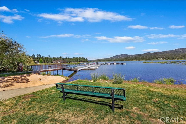 Spectacular one of a kind residence in prestigious Eagle Point Estates! This premier home has been meticulously maintained and comes turnkey furnished as you see it, including boat dock #78 in the resident's private marina. Impressive curb appeal is yours, with custom landscape and home design. Inside you will take pride in the wood floors, family room, living room, dining and luxurious chefs kitchen. The kitchen boasts a professional range, high end granite counters and deluxe finishes. The 4th downstairs bedroom/den does not have a closet but is steps from the downstairs full bathroom. Upstairs, the sumptuous master suite is a joy and includes a turreted sitting area and private roof top deck. All bathrooms are richly upgraded. Enjoy sweeping views of your amazing back yard from the oversized deck off the kitchen. An inviting spa and eating area are found on the deck. The awesome grounds include a firepit, outdoor kitchen, putting green and horseshoe pit! The oversized garage has 579 square feet. Eagle Point Estates is truly a coveted address. The community boasts the private marina and gated park complete with basketball court and playground, as well as a tennis court. You will marvel at the glorious Big Bear Lake fireworks displays from the marina, and view nature from this amazing home and community. Vacation rentals are not allowed per HOA.