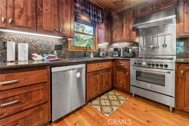Step into this captivating lakeside cabin, a true gem nestled in the lush landscapes of Stillwater Cove on Big Bear Lake at Gilner Point. Situated in one of the most coveted locations, this home offers an enchanting ambiance and a myriad of luxurious features. The heart of the home, the beautiful kitchen, showcases elegant granite countertops, an Italian Bertazzoni stove, and charming distressed wood floors. The living area is equally inviting, where you can cozy up by the stone wood-burning fireplace and soak in the picturesque views of the lake, expansive yard, and deck. The primary suite serves as a serene retreat, offering scenic vistas and a renovated bath complete with a tiled shower and walk-in closet. The guest bedroom exudes mountain charm with its knotty pine accents and a convenient built-in desk area. Adding to the home’s versatility, the bonus loft attic space is ideal for a recreation room, office or additional sleeping quarters. Step outside to the spacious back deck and fenced yard, an ultimate lakeside oasis perfect for outdoor entertaining. With easy access and ample parking, including a 2-car garage, this home is designed for the ultimate lakeside lifestyle, offering plenty of room for all your recreational toys. To complete this exceptional living experience, enjoy the convenience of your very own private boat dock, ensuring easy access to the water. This lakeside cabin on Big Bear Lake is more than a home; it’s a lifestyle. Indulge in the ultimate lakeside living experience today.