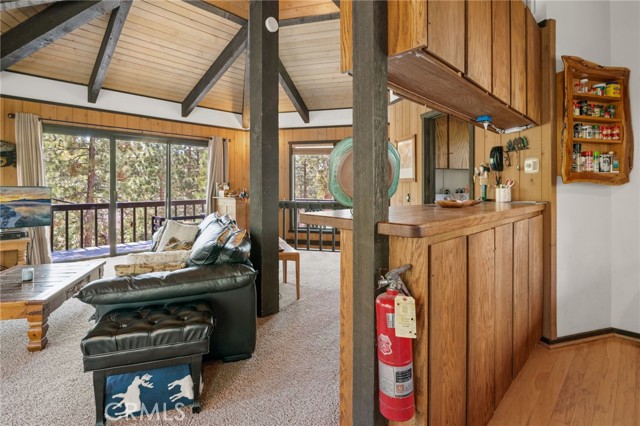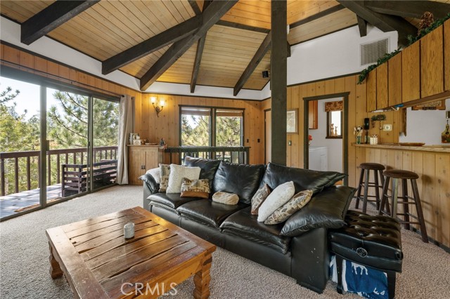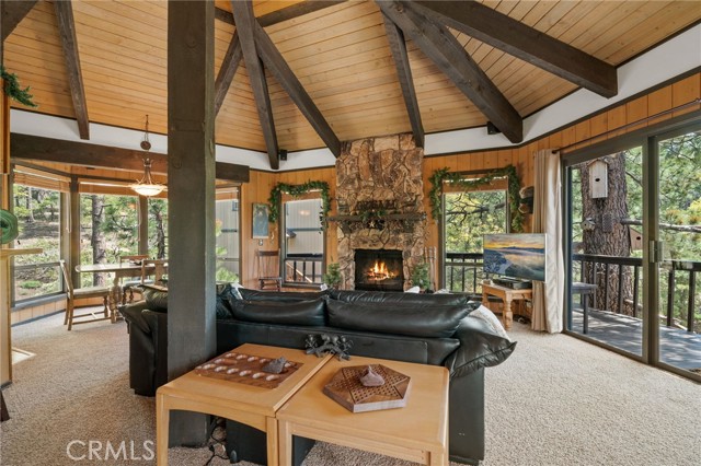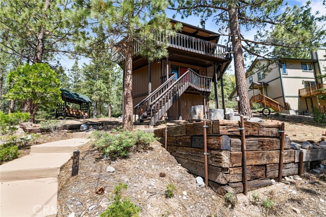 Cozy cabin surrounded by stunning mountain views. This multi-story cabin is the perfect getaway for anyone desiring an escape from the hustle and bustle of the big city. It's cul-de-sac setting provides visitors with the peace and quiet of its natural forest setting while remaining a short driving distance from supermarkets, shops and restaurants. Home features include a striking rock fireplace, cozy living room and kitchen with built in projector/sound system, 2 downstairs bedrooms connecting downstairs bath. With 180 degree views this cabin is the perfect place to bring your loved ones for a much needed escape.