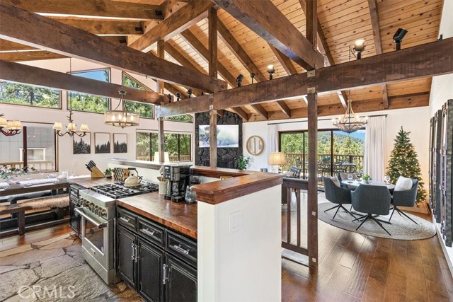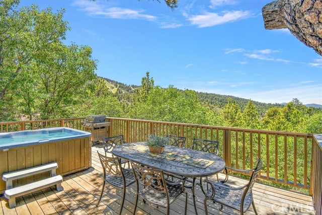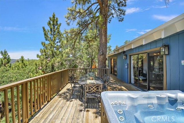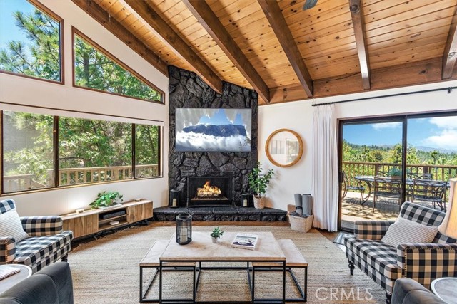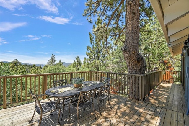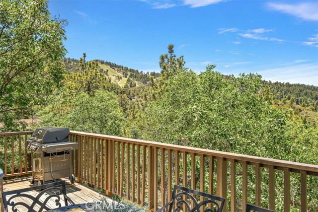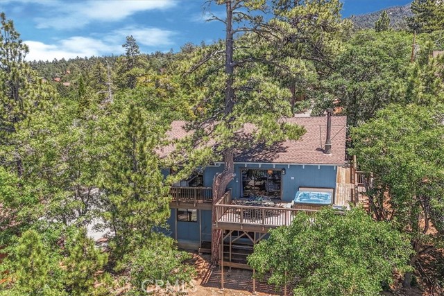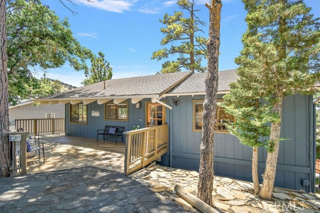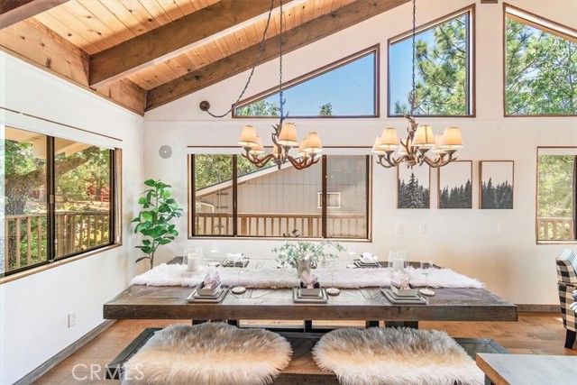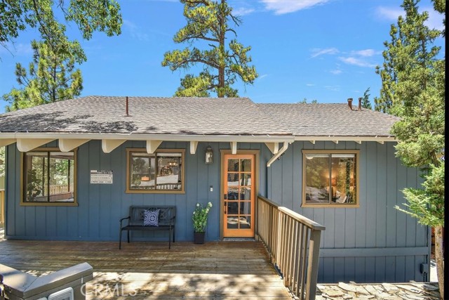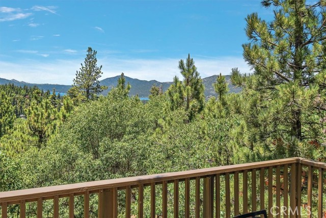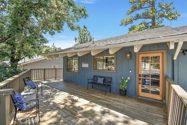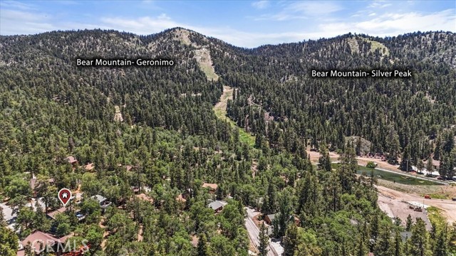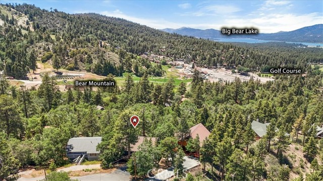 Views, Location & Fantastic Features! Discover this spectacular mountain home in a very special area of Moonridge, just 5 minutes or less from Bear Mountain, the golf course, zoo, & MORE! Enjoy the tranquility of this treetop retreat with dramatic ski slope & forested views. From some viewpoints you can see the lake. Consider the possibility of enhancing those lake views with strategic tree trimming. Nestled on an expansive 9,602 Square Ft Lot among majestic pines & oaks, the spacious and serene wrap-around deck beckons you for Al Fresco dining with amazing views or to unwind in the spa after a day of adventure. This stunning 3-bdrm, 3-bathrm home blends beautiful classic mountain elements with fantastic modern upgrades. The open Floorplan features flagstone floors, architectural wood beams with rustic tongue & groove vaulted ceilings and a beautiful rock-encased wood-burning fireplace, cozy on winter evenings. The open kitchen will inspire the chef in you with stainless appliances, including a 6-burner Kitchenaid pro-style range, butcher block counters , farm sink & a movable island. Share memorable meals in the large dining space plus there's an additional area for casual meals or a jigsaw puzzle. Experience the wall of glass with spectacular clerestory vaulted windows illuminating the “Great Room”. The primary bdrm boasts an en-suite bathroom w/fantastic views & a glass door leading to the rear deck, delivering retreat-like ambiance. The thoughtfully selected furnishings & décor combined with artful light fixtures further elevate this wonderful home. The downstairs game room-den has a freestanding gas fireplace a classic pool table & bar area. The billiard lighting casts an inviting glow over the felt surface-ready for a friendly game. This fantastic Fun Zone opens to the lower deck to enjoy the treed backyard providing a great snow play opportunity in the winter season. Unique features include copper sinks, “Smart” Toto toilet/bidets w/heated seats in each bathrm, Lutron Caseta intelligent lighting system, upgraded 200 amp electrical service, a 50 amp EV charging station, tankless water heater, & air conditioning, a rare luxury in Big Bear. Additional amenities include a laundry room & a massive storage area with a convenient utility sink. Offering a strong history of short-term rental income this property offers versatility as an income-producing rental, or an amazing personal home for full or part-time use. Come experience this homes Mountain Magic!