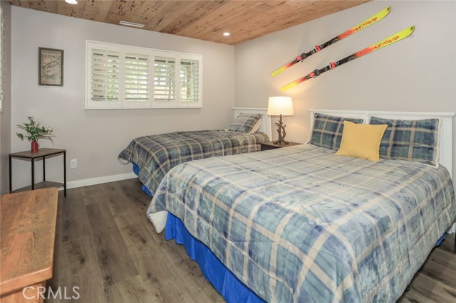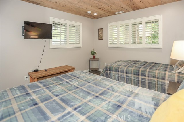 The search is over. WALKING DISTANCE TO THE LAKE. Fully remodeled in 2020, this gorgeous home features wood laminate flooring, recessed lighting, vinyl windows and sliders, plantation shutters, skylights, a whole house fan, and wood accent walls and ceilings. The kitchen sports custom cabinets, granite counters, and stainless steel appliances. Two spacious bedrooms and bathrooms provide tranquil space. The two car garage is equipped with an entertainment area and the backyard comes with a kid's bunk house. A fully fenced in backyard provides privacy for the covered patio and deck complete with a jacuzzi, BBQ with granite serving counter, al fresco dining area, and solar lighting. This home comes fully furnished and has been a successful vacation rental. OWC WITH 20% DOWN PMT FINANCING @5.75% CALL BOB FOR DETAILS