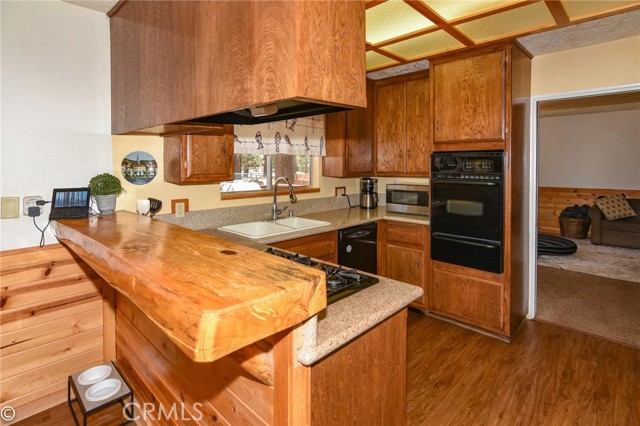 Step into your mountain paradise and experience the wonders of this breathtaking single-level log-sided home, perfectly situated in the desirable Eagle Point neighborhood. As you enter, you'll be greeted by a sense of tranquility and comfort that only a mountain home can offer. The expansive master suite beckons, offering a private retreat where you can unwind and recharge, surrounded by the serene beauty of nature. With two distinct living areas, there's ample space for everyone to gather and create lasting memories. Curl up by the wood-burning stove in the cozy living room, or enjoy intimate conversations around the crackling wood fireplace in the family area. No matter where you find yourself, a comforting ambiance awaits. The heart of this home, the kitchen, is a haven for culinary enthusiasts. Adorned with granite countertops and boasting a generous pantry, it offers the perfect blend of style and functionality. Prepare delicious meals, entertain loved ones, and share laughter-filled evenings around the dining table. Outside, the wonders continue. Picture yourself indulging in relaxation within the soothing embrace of the hot tub, or nurturing your green thumb in the fenced garden area. The spacious, landscaped yard invites you to breathe in the crisp mountain air and revel in the natural beauty that surrounds you. For those seeking adventure, fear not! This home caters to your needs with RV and boat parking, allowing you to embark on thrilling journeys at a moment's notice. Additionally, the versatile layout and prime location make this a dream home for full-time living, a second home getaway, or even a potential short-term rental. Parking will never be a concern, as you'll find ample space. In addition to the RV parking and attached 2-car garage, you'll discover extra parking in front of the home, ensuring that family, friends, and guests can easily join in the festivities. Come and experience the magic of this mountain retreat for yourself. Words cannot truly capture the essence of its charm.