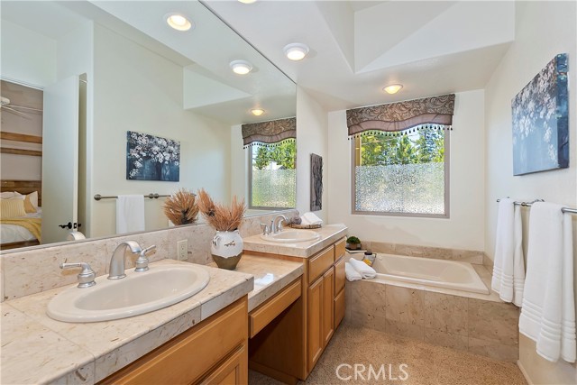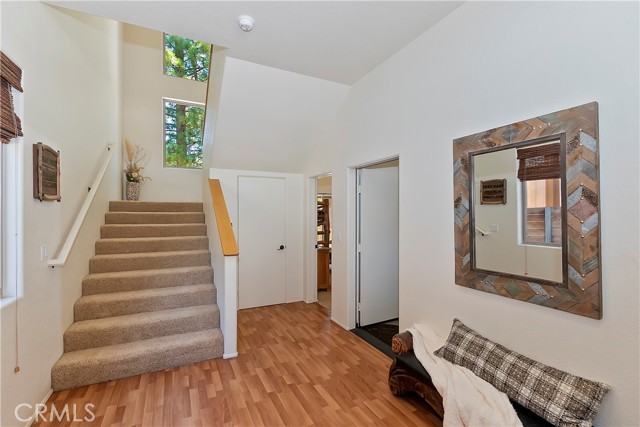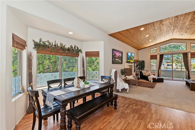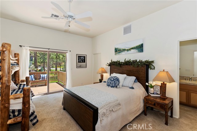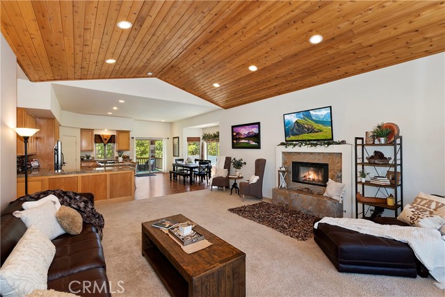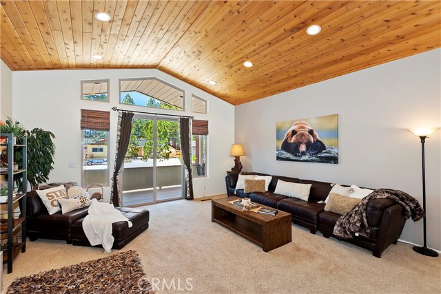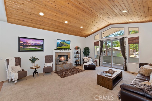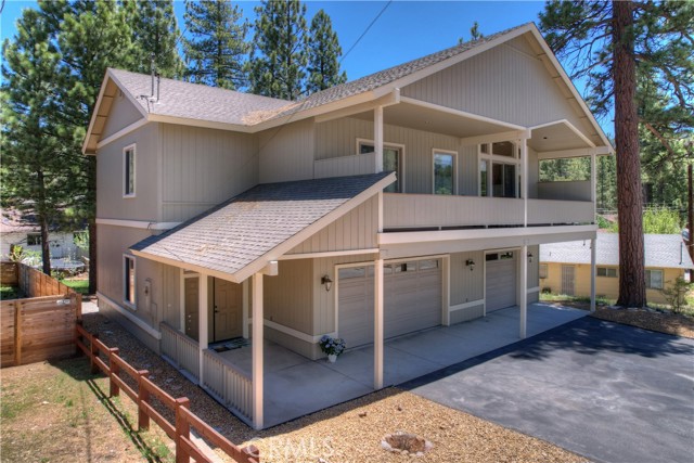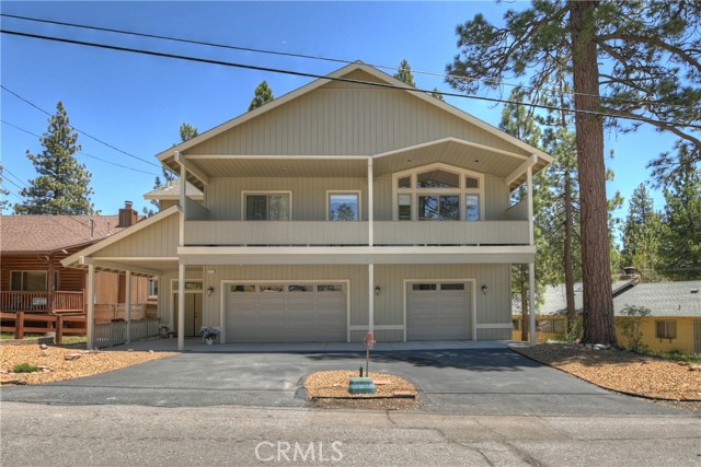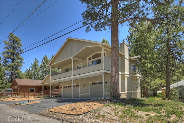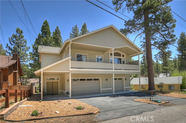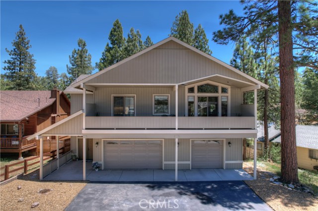 Experience the beauty of Eagle Point in this charming Big Bear home! Centrally located to the slopes, village and lake, you can enjoy the 4th of July fireworks from the nearby swim beach. Inside, you'll find a spacious great room with knotty pine cathedral ceilings, a stunning stone fireplace and tall ceilings. A rare find in Big Bear this home has Air Conditioning!!!! There's plenty of space for your family to enjoy cooking and gathering. The master bedroom is upstairs with walk-in closet and private bath jetted tub. Other features include Lifesource water system, large 3 car garage (one is currently a game room) the other is big enough to store a boat in and a covered deck. All three bedrooms are equipped with ensuite bathrooms, walk in closets and the 2 upstairs bedrooms have fantastic tree top views! Home has recently been painted, has a newer furnace lots of updates inquire for more details. Furnishings are negotiable. Embrace all of the tranquility Big Bear has to offer!