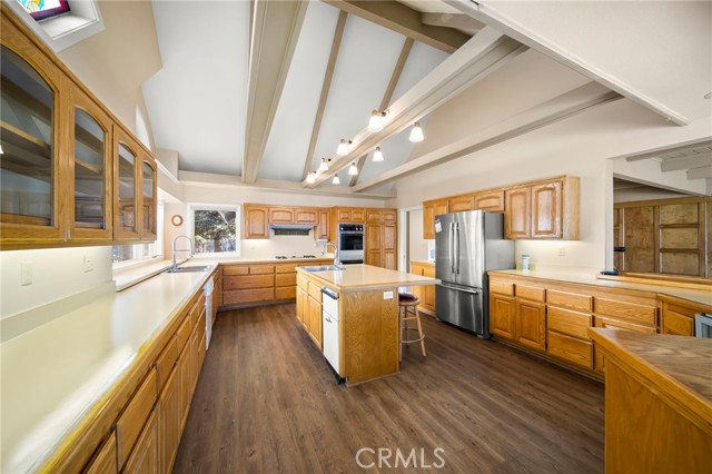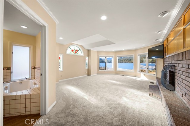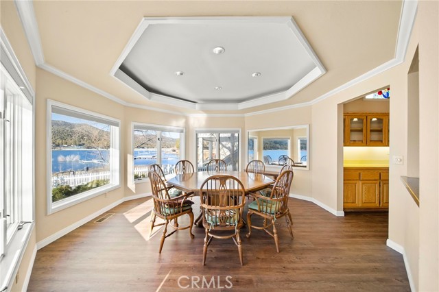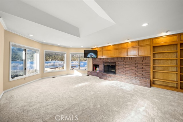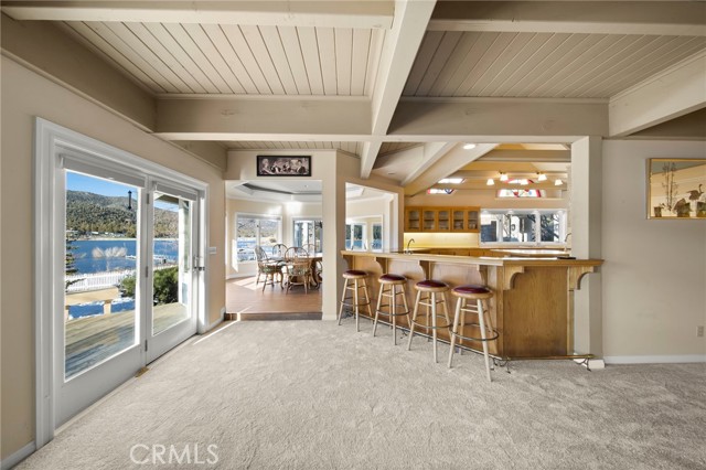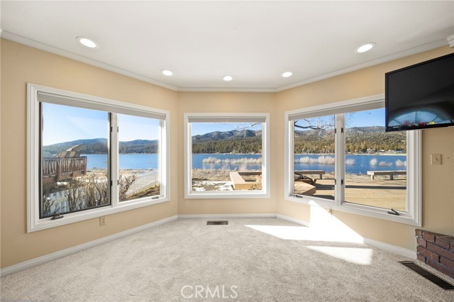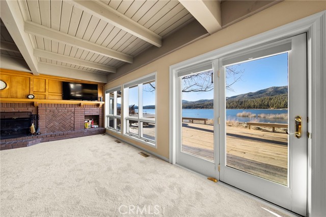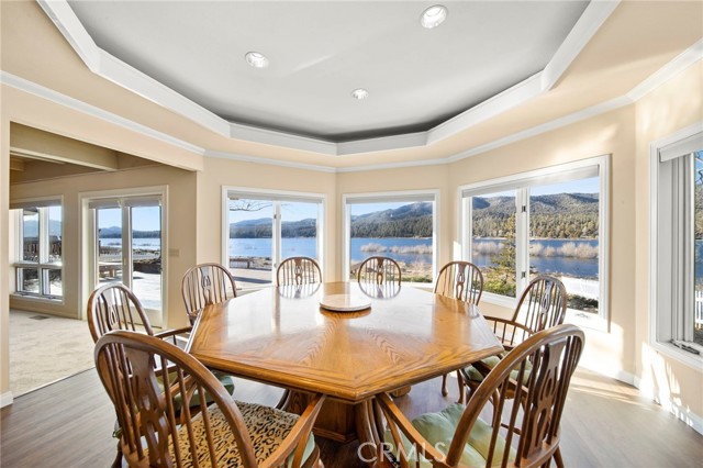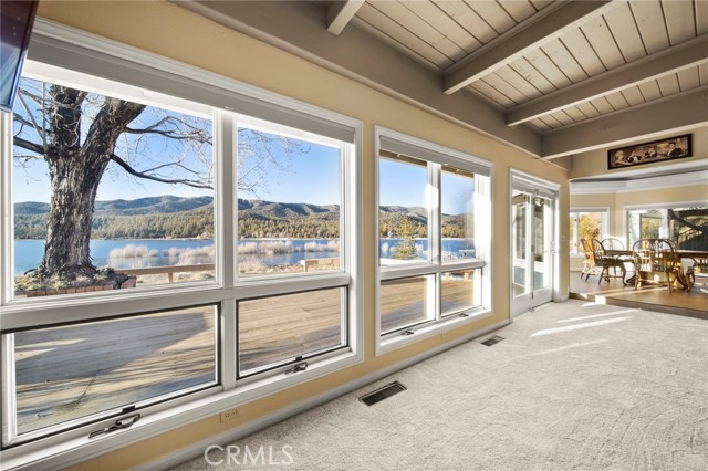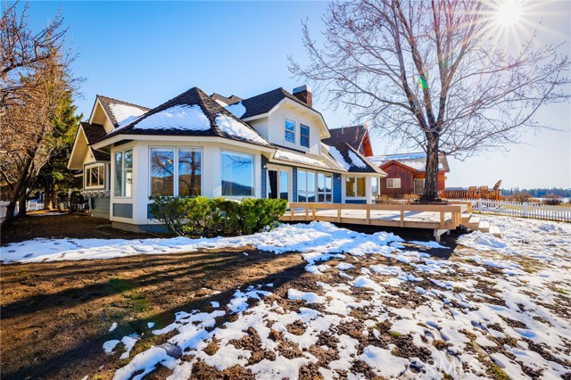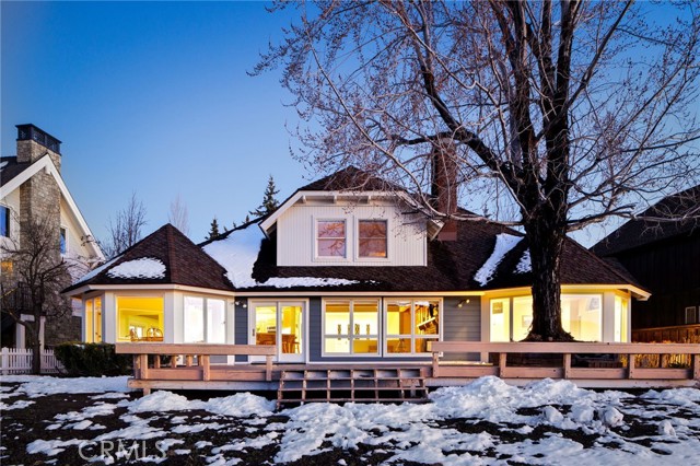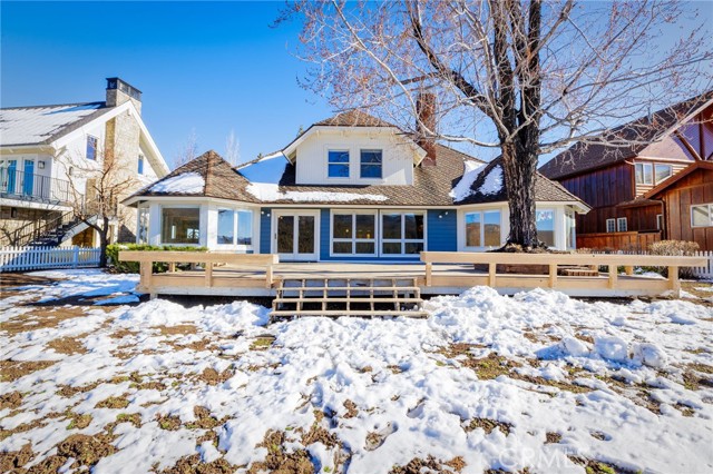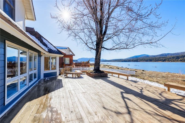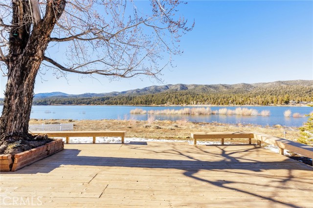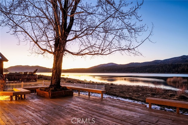 SELLERS MOTIVATED!!! HUGE PRICE REDUCTION!!!!Experience a one of a kind lake front estate in the coveted Eagles Knolls gated community! This unique waterfront paradise, while maintaining it's vintage style, yields a warm yet modest glamour offering stunning panoramic views throughout. Never miss another sunset from this stunning haven. Take in the mirrored sky's reflection upon your private lake and receive the long awaited serenity that you deserve. The oversized deck offers plenty of options from a host's perspective while still providing a perfect canvas for a peaceful and meditative state of mind. Prepare for a summer of fun, or a winter full of festivities! Paddle out or cast a pole from your dock any time you like. Cozy up beside the fire in the Master suite on the first floor, surrounded by breathtaking views of big bear lake overlooking the north shores, perhaps after a nice soak in the jetted jacuzzi tub. Let's not forget the additional 2 bedrooms and 1 bathroom upstairs. Aesthetics such as the high open beam ceilings in the Great room and octagon dining area- completely custom throughout, provide a large space for all your family and friends to enjoy. The lake-view kitchen also offers high ceilings with a large Island and bar seating, wood cabinetry and plenty of storage. This private oasis neighborhood boasts gated tennis court, children's playground private marina with dock rights and 24 foot slip, additional boat and RV parking available. Included is a 4 person 20 foot Kayak ready for use anytime you like. Brand NEW flooring and carpet with 15 year warranty along with New window coverings. 2 car garage with high ceiling and workbench storage for all your needs. Additional long driveway able to accommodate additional vehicles. This beautiful lakefront residence even has a white picket fence! Opportunity will not last, don't miss your chance. Call now to schedule your private showing.