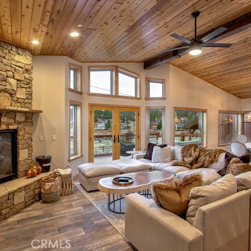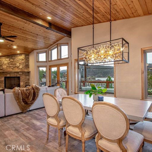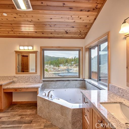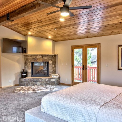 Priced to sell now! Investment property-Dec.2022 rental income over 20K! Reduced 200k from previous listing. Nothing in Big Bear Lake compares-you cannot find anything like this under 2 million. Perfect lake, mountain, and park views! New construction and modern flare with a rare find - an elevator at each level in sought-out Boulder Bay. Views from practically every window with great short-term rental history and an open floor plan with full-time living capabilities. Fully heated garage on first level. Home lives like it’s over 3,000 sqft. Enter the first level and relax in the well equipped game room/media area or store your things in the oversized mud room. Ascend by elevator to level two’s open floor plan with a vaulted ceiling in the living/dining room and a massive electric fireplace that warms the whole area. Modern kitchen with high-end new appliances such as Cafe, two sinks, an island, and a large pantry. Oversized Balcony off living area with views of lake, park, and mountains. Two jr. en-suite bedrooms with access to the backyard balcony. Backyard has metal snow proof stairs to a viewing platform of boulders leading to a brand new modern spa/hot tub with 60 jets. Ascend by elevator to the third level entirely dedicated to the master suite. Equipped with the same massive electric fireplace and vaulted ceiling, oversized balcony, jacuzzi tub, glass enclosed oversized shower with bench and more! Home is quality construction with exceptional insulation, all wood door frames and more!