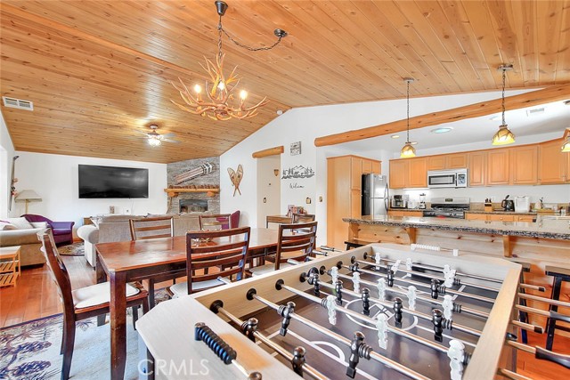 Calling all eager buyers! Don't miss out on this incredible opportunity! Step into this delightful three-bedroom, two-bathroom cabin, perfectly situated within a short stroll of Big Bear Lake. Fully furnished and ready for AirBnB, this cabin comes with a glowing reputation and a history of satisfied guests. Easy access to Pleasure Point Marina just a 3-minute drive away, summer rentals are poised for success. And for outdoor enthusiasts, Boulder Bay park is a mere 5-minute walk! The perks continue inside with a cozy kitchen stainless steel appliances and a well-stocked refreshment station, ensuring your mornings start on the right foot. Cozy up in the inviting living room, complete with board games, a smart TV, and a warm gas fireplace. The master bedroom offers a luxurious retreat with a king-size bed and family-friendly amenities, while the other bedrooms promise comfort and fun for everyone. Outside, entertainment awaits on both front and back decks, featuring a gas BBQ, corn hole game, and a gas fire pit, perfect for gathering under the stars. And let's not forget the recent addition of a 2023 model hot tub with smart features, the ultimate relaxation spot! This charming cabin is ready to welcome its next happy owner – could it be you?
