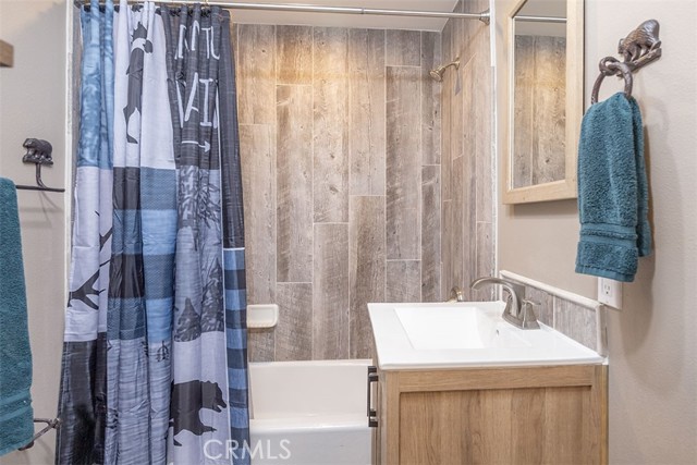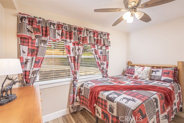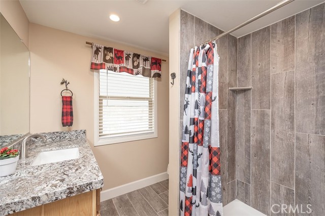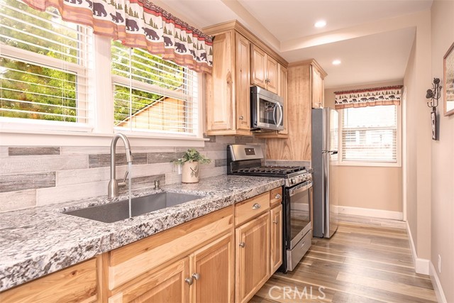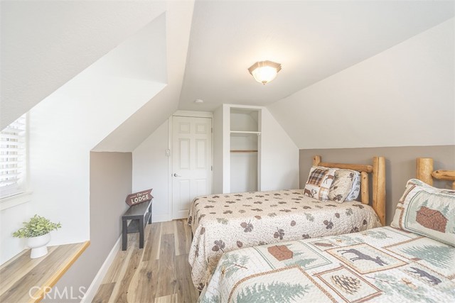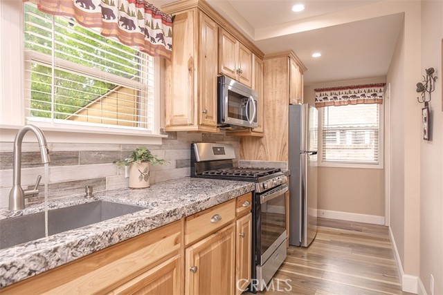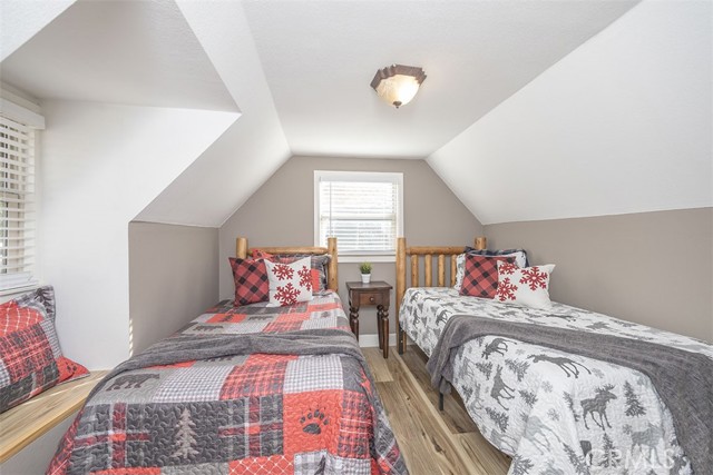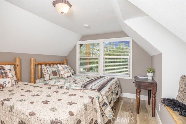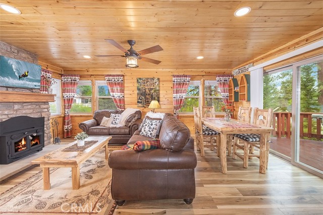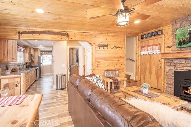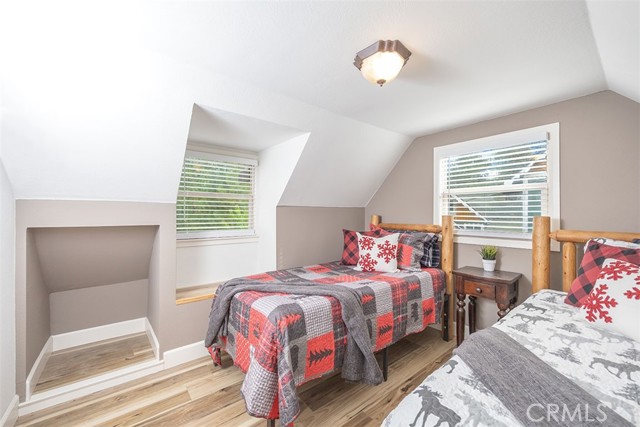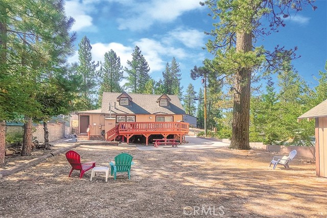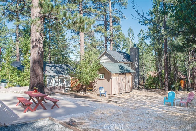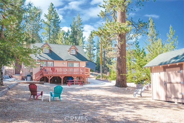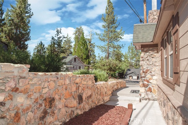 This Exquisitely Remodeled-Boulder Bay home offers an artful combination of classic Big Bear and many wonderful upgrades buyers hope to find. Nestled on a generous 7800 sq ft lot with 127’ of depth amid a backdrop of lovely trees offering SO much potential!. Add-on, build a garage plus the possibility of a future Accessory Dwelling Unit (ADU) if desired. Boasting 3 Bedrooms and 2 wonderful bathrooms with contemporary finish details. The “Great Room” features beautiful tongue and groove wood walls & ceilings, a pretty focal-point stone fireplace with a heat-efficient insert providing a special place to cozy up to on cold winter nights. The home has upgraded vinyl dual-pane windows, nice window treatments, updated copper plumbing and a combination of wood-style laminate flooring with tile-plank floors in the bathrooms. The artful kitchen features hickory cabinets, stunning granite countertops, stainless-steel appliances & a rustic subway-style backsplash that adds to this homes mountain magic. The wonderful outdoor gathering space delivers fantastic flow from the indoor spaces. Step from the “Great Room” onto the spacious rear deck, fantastict for BBQ’ing, outdoor dining or to relax and restore. Experience the expansive yard with concrete patio area, space for an outdoor spa (with some pre existing wiring), concrete parking & walkways, attractive stone exterior details, a nice storage shed plus a sweet potting shed or playhouse for the “kids”. There is a convenient full guest bath on the main floor with custom wood-style plank tile, an updated vanity and mountain-style decorative accents. The main floor also boasts a light & bright bedroom suite with a huge custom shower, beautiful granite slab, hickory vanity and artful industrial shelving. Two additional bedrooms upstairs provide room-for-a-crowd. There is a nice laundry room with a washer & dryer plus a utility sink! Offering easy access in one of Big Bear's most desirable locations. Most of the homes furnishings and decor are available. Walk, Ride or Roll to the Marina and Lake in Minutes. Great as a full-time or vacation home with good potential for rental income! Start living your Best Big Bear Life Now!