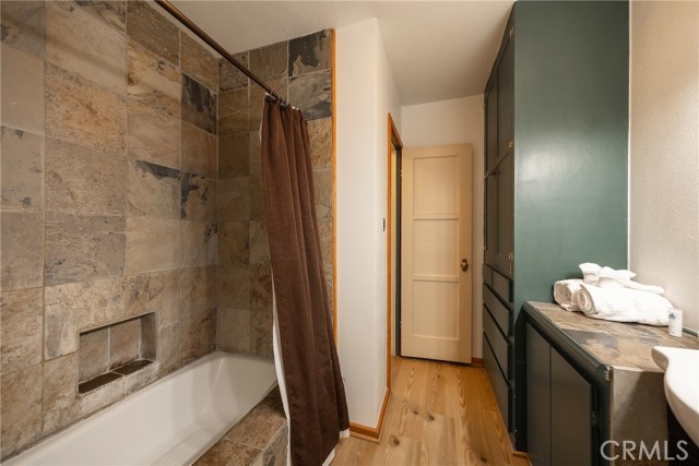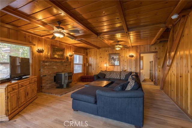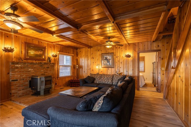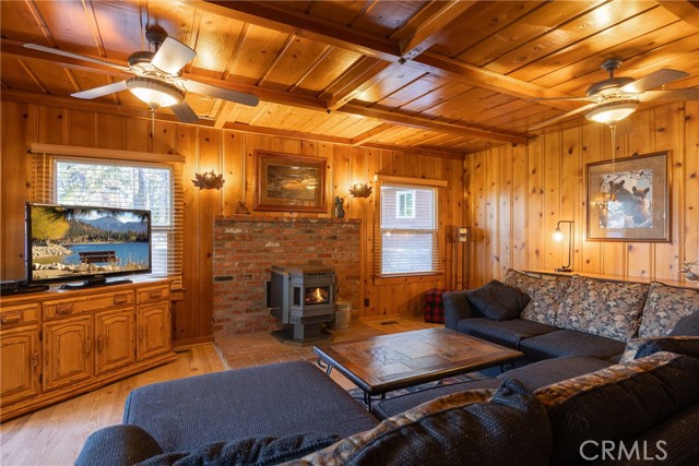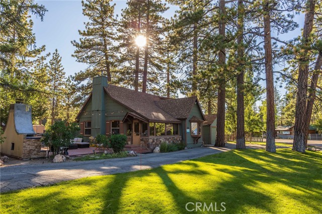 Welcome to your dream getaway at this charming Big Bear Lake cabin, where breathtaking lake views and true cabin charm await. Nestled in a beautifully landscaped setting, this property features an inviting outdoor space complete with a built-in grill and BBQ, alongside a cozy outdoor fireplace—perfect for evening gatherings under the stars. Step inside to discover a spacious living room adorned with timeless wood siding, creating a warm and welcoming atmosphere. Also, on the main level, you’ll find two comfortable bedrooms and two well-appointed bathrooms, while upstairs boasts an additional bedroom, a convenient half bath, and a cozy gathering area with a futon that doubles as the fourth sleeping space. Recent renovations highlight modern touches, including new flooring and a stylish kitchen with a dining area. Enjoy the ultimate convenience of being just across the street from the lake, moments from the marina, and a short stroll into the vibrant village. This cabin is not just a home; it's an invitation to experience the best of Big Bear living!