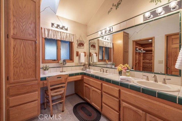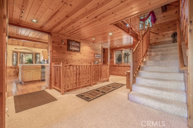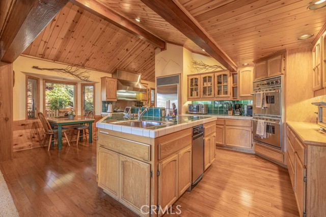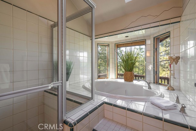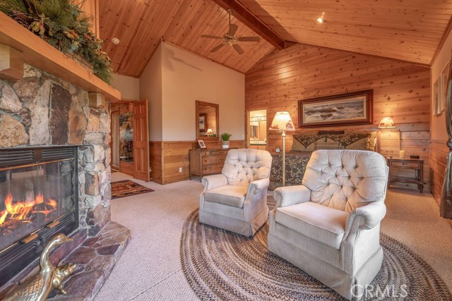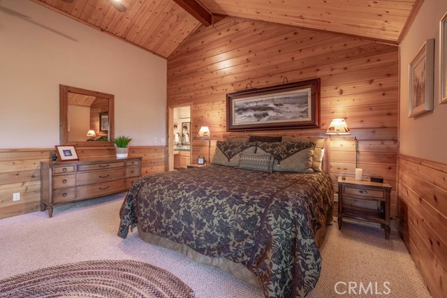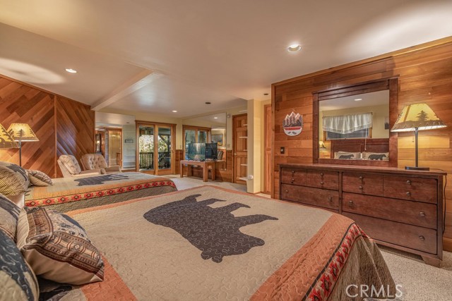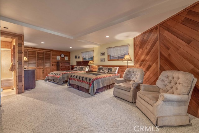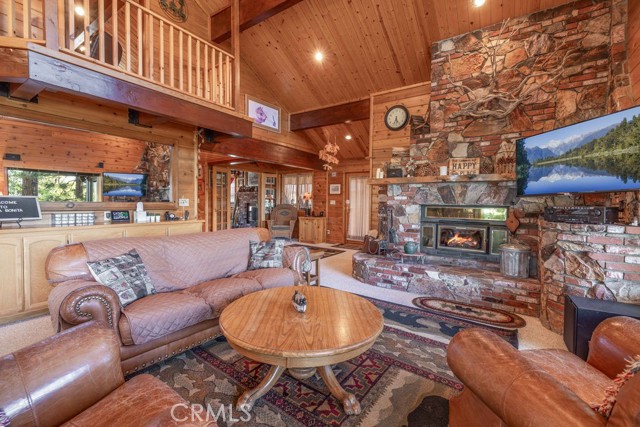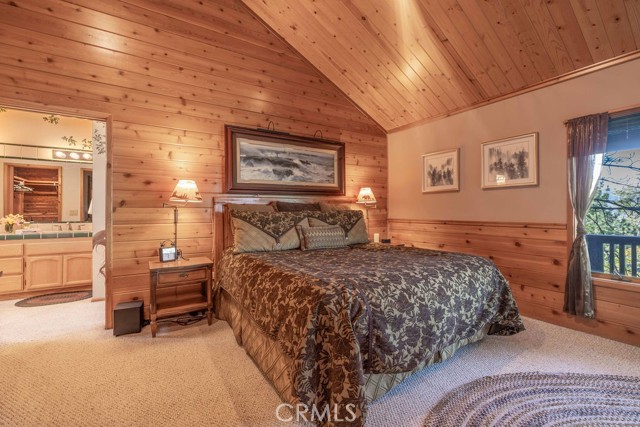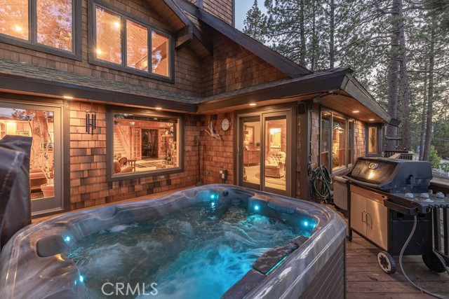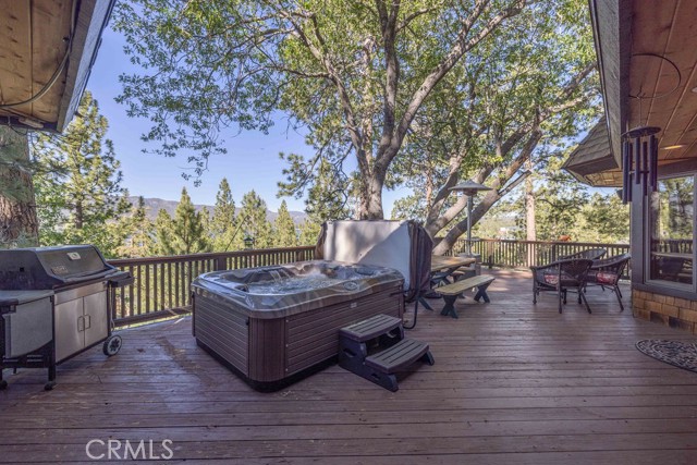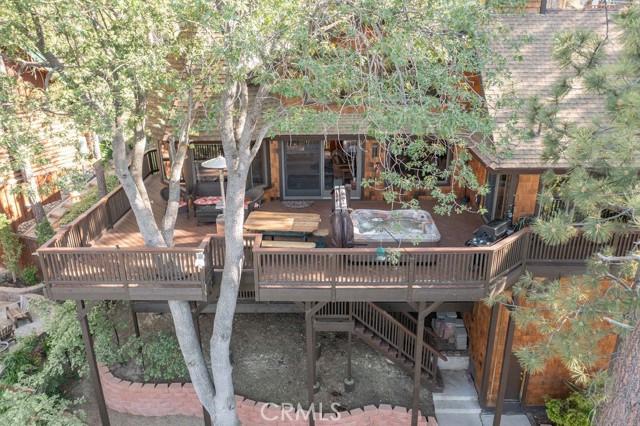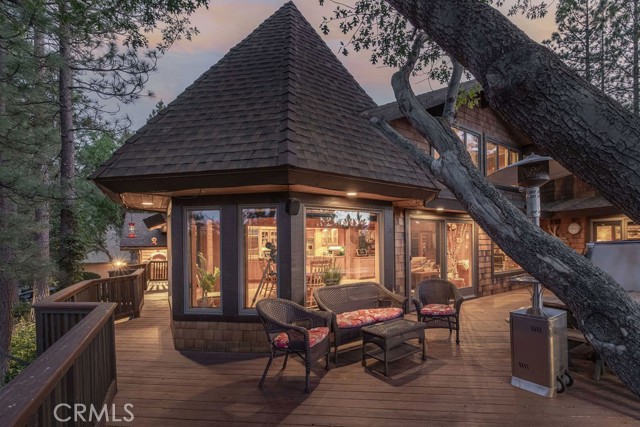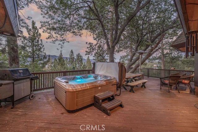 Stunning Panoramic Lake Views Await!! You will be in awe as you step out onto the sprawling deck and take in the incredible setting. Situated up in the trees you’ll feel like you’ve found your own treehouse in the woods. This home feels warm and cozy, yet offers 3 large en suite bedrooms, including a spacious main level master suite, a loft office/bedroom 4, 5 bathrooms and over 3,500 sq ft of living space. This does not include the well appointed converted lower garage which now serves as a heated and fully functioning game room. As you walk through the warm entry room (with it’s own fireplace!) you will find extensive cedar interior, vaulted ceilings and a beautiful indigenous rock & brick fireplace in the living room. The open kitchen area features dual sinks and high end appliances which include a Subzero refrigerator, Viking stovetop, Scotsman ice maker and Thermador warming drawers. Central Vac system, Anderson windows, partially heated driveway and an outdoor spa… there are honestly too many features to list. This home is coming fully furnished and turnkey, ready for the new owners to enjoy! It truly has all that you are looking for and more in a mountain retreat and is centrally located just a short distance from the lake, the Village, Snow Summit and all that Big Bear has to offer.