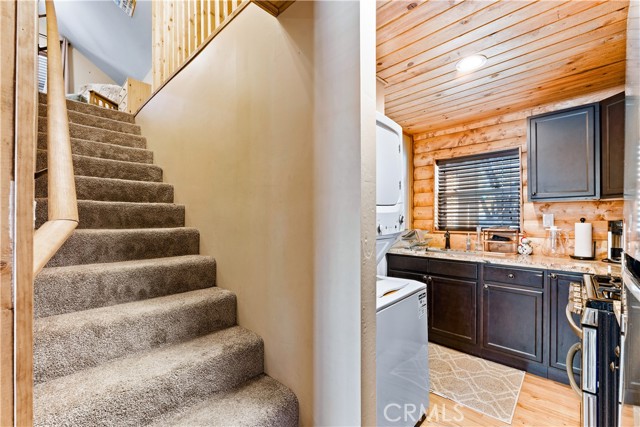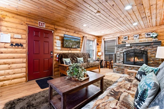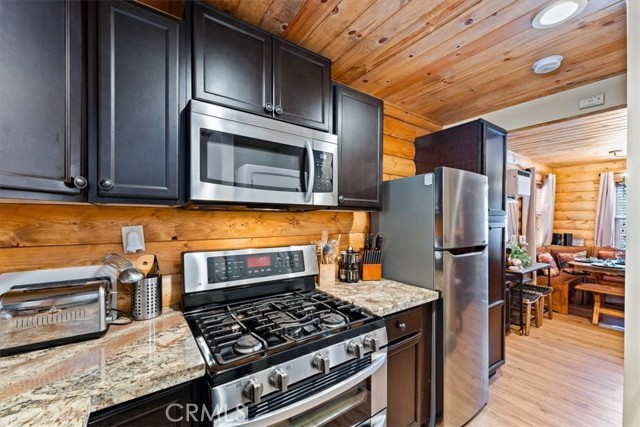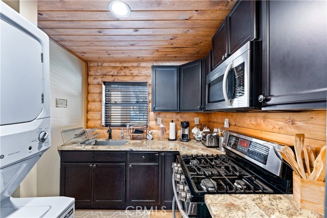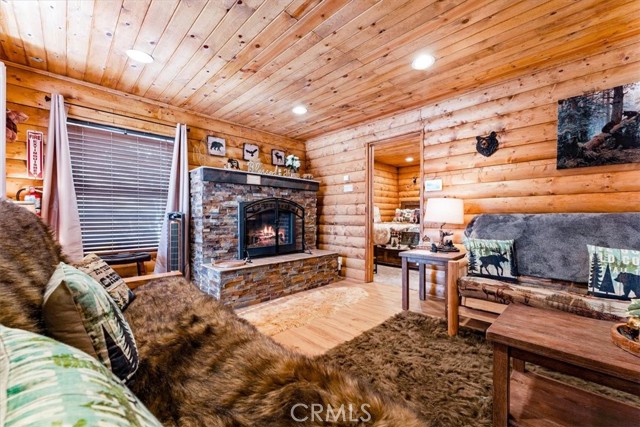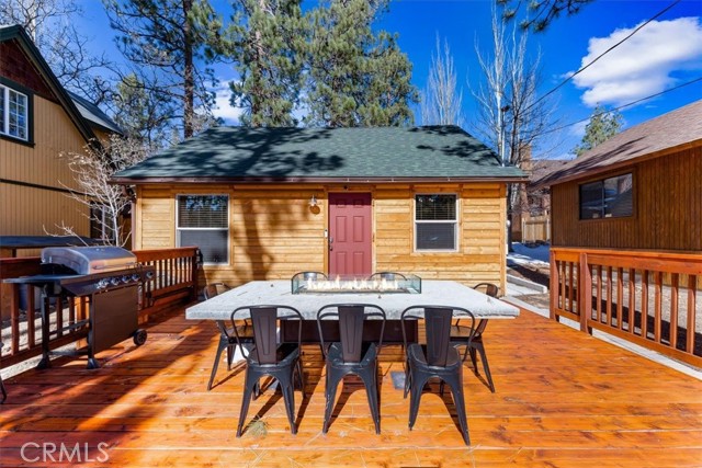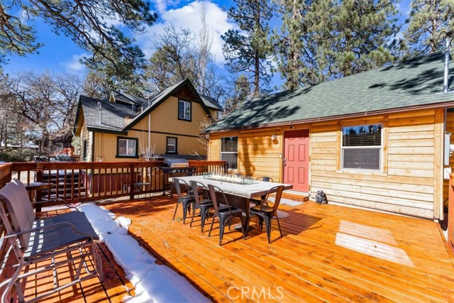 Welcome to this beautiful and cozy log cabin nestled in the breathtaking scenery of Big Bear Lake. With its prime location, just a 5-minute walk to the lake and minutes away from the alpine slide at Magic Mountain, this cabin offers the perfect mountain retreat. Whether you choose to use it as a short-term rental property, as your personal second home, or for any other purpose, you'll find endless enjoyment in this mountain oasis. Step onto the large front deck, complete with a table and chairs, and immerse yourself in the tranquility of the great outdoors. It's the perfect spot to relax, unwind, and soak in the natural beauty that surrounds you. Inside, you'll find a well-appointed kitchen with stainless steel appliances, providing everything you need to create delicious meals. For added convenience, there's a stackable washer and dryer, making laundry a breeze during your stay. Whether you're seeking adventure on the lake, exploring the nearby attractions, or simply seeking solace in nature, this log cabin offers it all. Don't miss out on the opportunity to own your very own mountain escape.