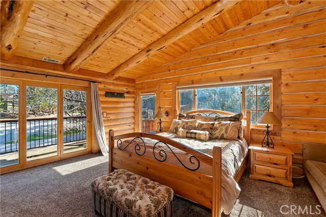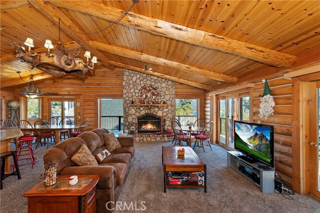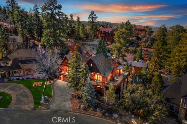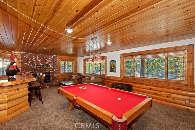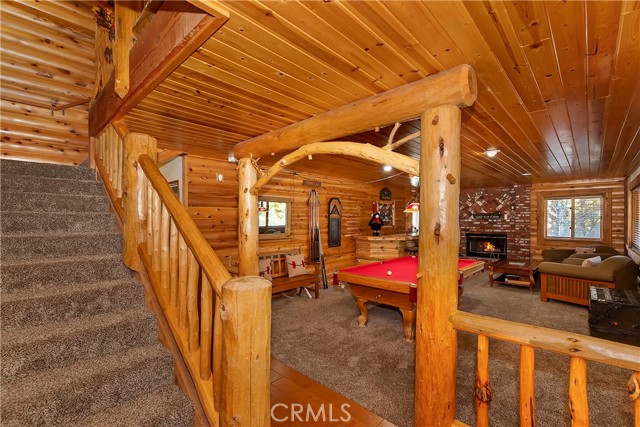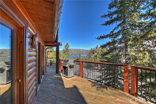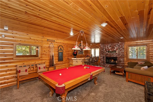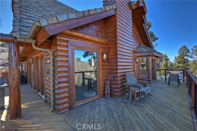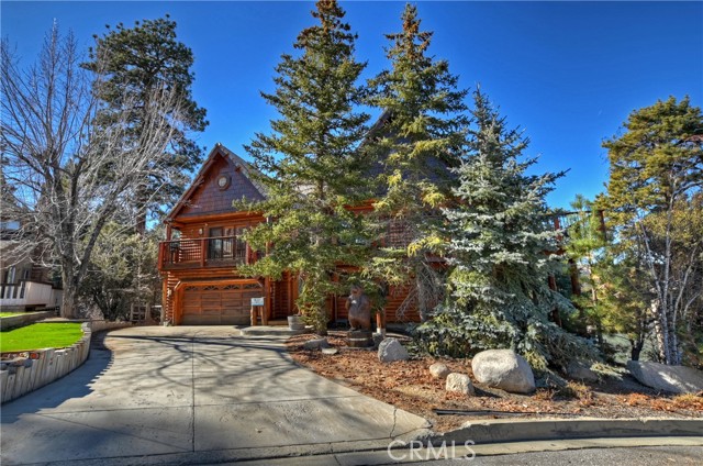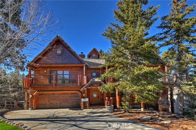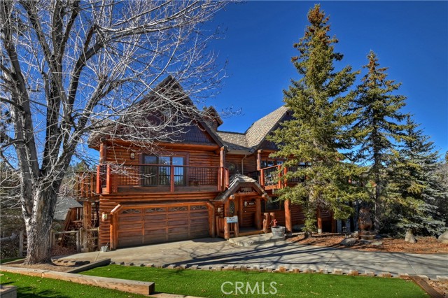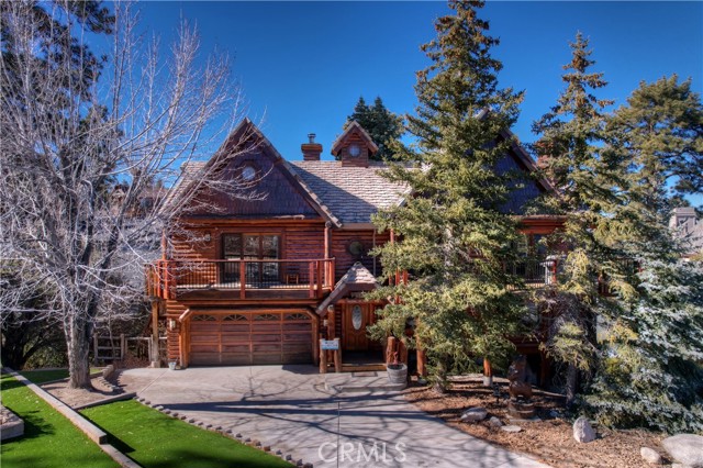 EXPERIENCE THE EPITOME OF MOUNTAIN LIVING IN THIS GILLIGAN LOG-STYLE HOME STRATEGICALLY POSITIONED IN HIGHLY COVETED IRONWOOD ESTATES, JUST BEHIND THE VILLAGE! Revel in breathtaking views of Big Bear Lake from the prime location of this magnificent property ~ This cabin's charm is enhanced by its rich knotty pine features and log accents throughout, creating a warm and inviting atmosphere ~ The thoughtfully designed reverse floor plan allows for multiple gathering areas while maximizing on the scenic beauty, featuring a spacious redwood wrap-around deck for seamless outdoor living ~ Upstairs, the large open living room and kitchen are perfect for entertaining large groups ~ The expansive dining area is complemented by a massive fireplace, creating a cozy ambiance for memorable gatherings ~ The grand primary bedroom on the upper level offers a luxurious retreat with vaulted ceilings and a private fireplace ~ Downstairs, discover three bedrooms, an office and a game room ideal for pool enthusiasts with another fireplace for added comfort ~ Convenient level entry leading to a 2-car garage ~ Don't miss the allure of Ironwood Estates and come and experience everything this extraordinary home has to offer!