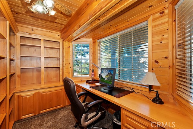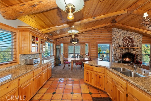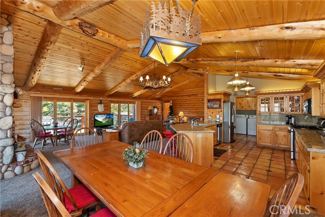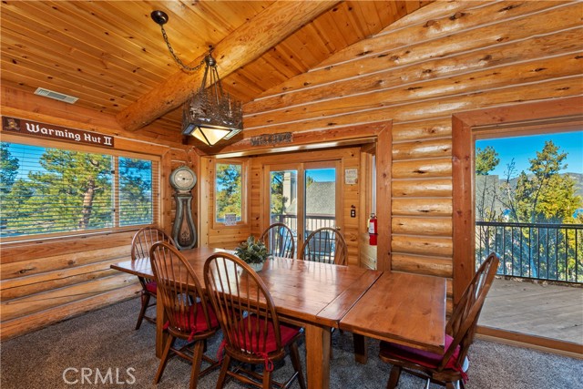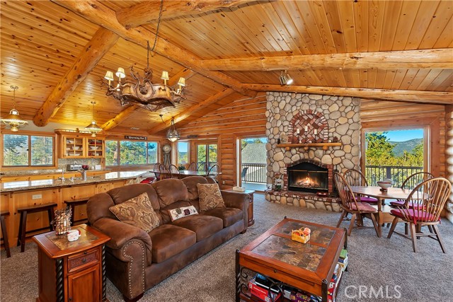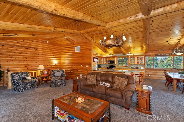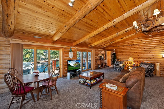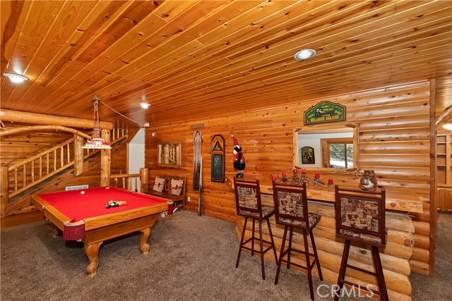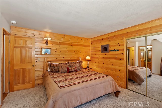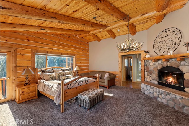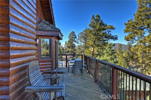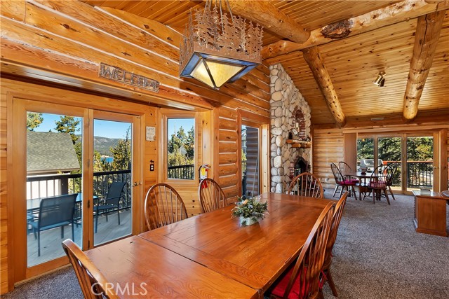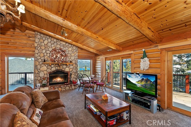EXPERIENCE THE EPITOME OF MOUNTAIN LIVING IN THIS GILLIGAN LOG-STYLE HOME STRATEGICALLY POSITIONED IN HIGHLY COVETED IRONWOOD ESTATES, JUST BEHIND THE VILLAGE! Revel in breathtaking views of Big Bear Lake from the prime location of this magnificent property ~ This cabin's charm is enhanced by its rich knotty pine features and log accents throughout, creating a warm and inviting atmosphere ~ The thoughtfully designed reverse floor plan allows for multiple gathering areas while maximizing on the scenic beauty, featuring a spacious redwood wrap-around deck for seamless outdoor living ~ Upstairs, the large open living room and kitchen are perfect for entertaining large groups ~ The expansive dining area is complemented by a massive fireplace, creating a cozy ambiance for memorable gatherings ~ The grand primary bedroom on the upper level offers a luxurious retreat with vaulted ceilings and a private fireplace ~ Downstairs, discover three bedrooms, an office and a game room ideal for pool enthusiasts with another fireplace for added comfort ~ Convenient level entry leading to a 2-car garage ~ Don't miss the allure of Ironwood Estates and come and experience everything this extraordinary home has to offer!