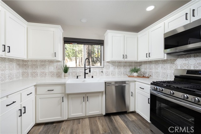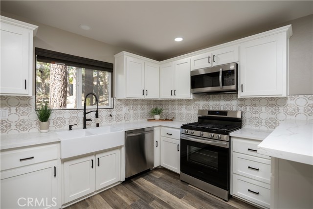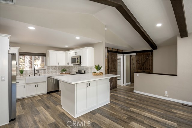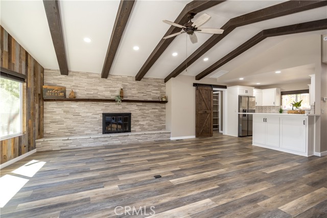 This Fantastic mountain home has been fully remodeled! The large living/grand room has high ceilings. The newly renovated kitchen features new appliances, stainless steel finishes, and ample counter and cabinet space. The bedrooms each have their own sliding doors that open to the wrap around deck. The bathrooms are modern, with all new fixtures and custom tile. Home also comes with a spectacular, two car attached finished garage. The property features a large deck for entertaining guests or simply relaxing and taking in the scenery. The lot is 10,450 sq ft with RV parking and full hook ups! It is the perfect blend of rustic charm and modern amenities. All this and it is located in one of the most desirable areas of Big Bear! Just a few block to lake, ski slopes and shopping. Plenty of room to expand and add a THIRD bedroom! Or how about room for an ADU? So many possibilities! Don't miss out!
