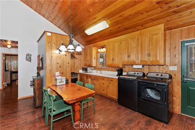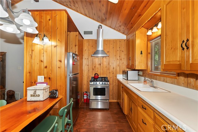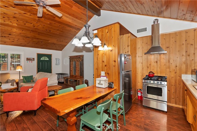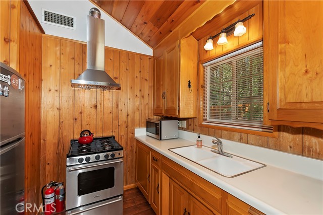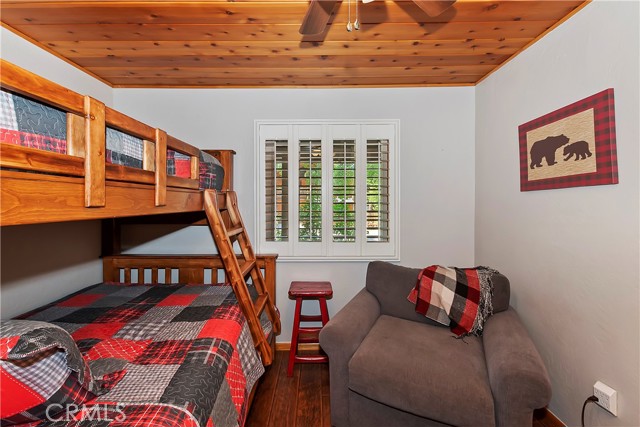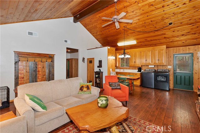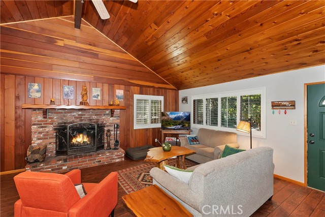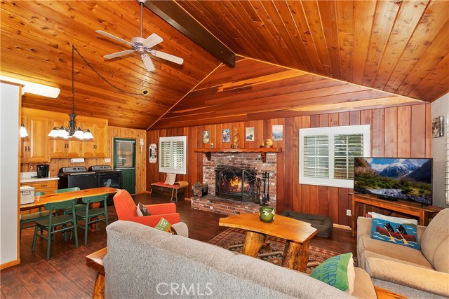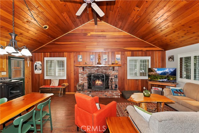 Come see this charming Sierra-style single-story home, ideally situated near Snow Summit Ski Resort providing easy level access to all that Big Bear has to offer ~ Perfectly maintained, this cozy retreat invites you to embrace an active lifestyle in the heart of Big Bear ~ Step inside to an open floor plan, featuring tongue and groove wood ceilings and walls, complemented by wood flooring throughout, and brick fireplace, perfect for those chilly winter evenings ~ The open kitchen boasts stainless steel appliances and a washer/dryer ~ This classic getaway is being offered fully furnished with two comfortable bedrooms and one bathroom ~ Outside, you'll find a low maintenance trex deck, a fenced backyard with horseshoe pit and room to roam ~ The attached one-car garage provides ample space for parking and storage ~ Centrally located, this home is just minutes from the lake, the Village, and ski resort ~ Well cared for and never used as a vacation rental, this adorable home offers vintage charm, a cozy interior and a convenient location ~ Schedule a showing today and experience the magic of mountain living!