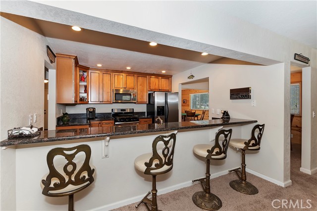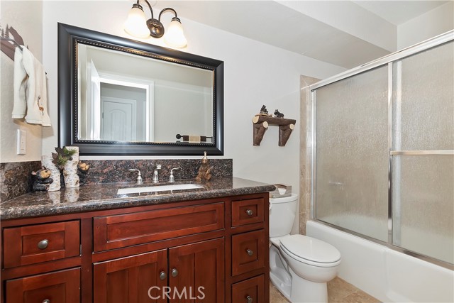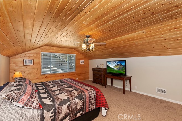 EAGLE POINT! This 5 bedroom, 4 bath home is located in the desirable neighborhood of Eagle Point just 3 minutes to Snow Summit, the lake, restaurants and shops. This home just had a new roof installed and was recently remodeled & boasts 3 master suites, one being currently used as a playroom. The big family & living rooms are great for large gatherings. The family room has a cozy brick fireplace w/ a gas lighter & mantel. There are pinewood T&G accent walls throughout the home for that mountain feel. The kitchen has custom cabinets w/ a granite countertop, stainless steel appliances, pantry & breakfast bar. The backyard is great for just relaxing on the patio, playing a game of horseshoes or listening to the seasonal creek. A new heater was just recently installed. There is a place to park your RV or boat too. This would make a great full-time residence, vacation getaway or vacation rental. Don't miss out on this beauty.