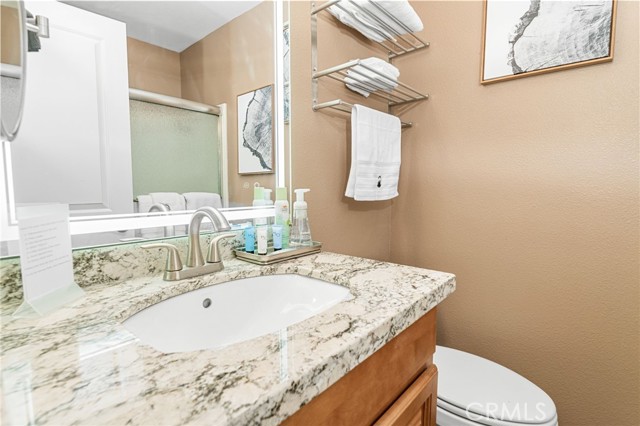 Bathroom Information | Bathtub, Shower in Tub, Granite Counters, Heated Floor, Vanity area |