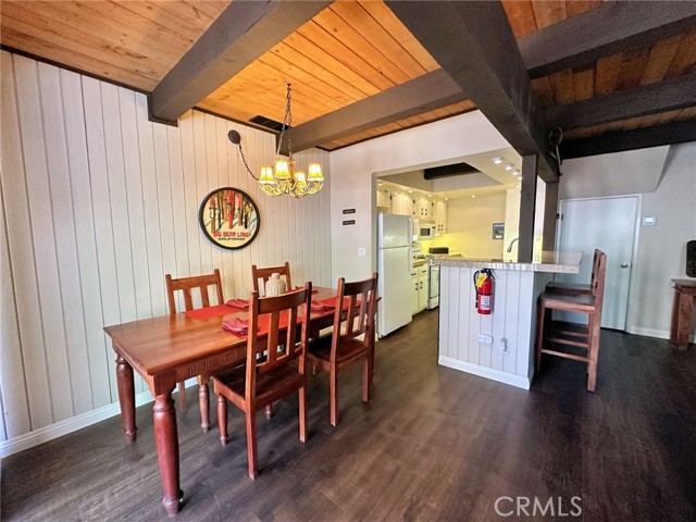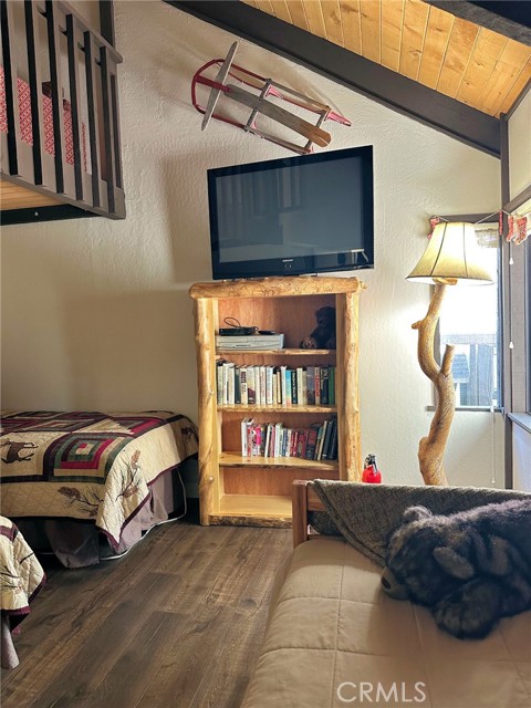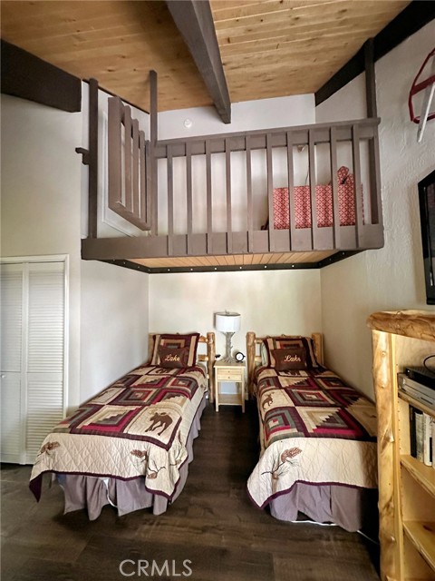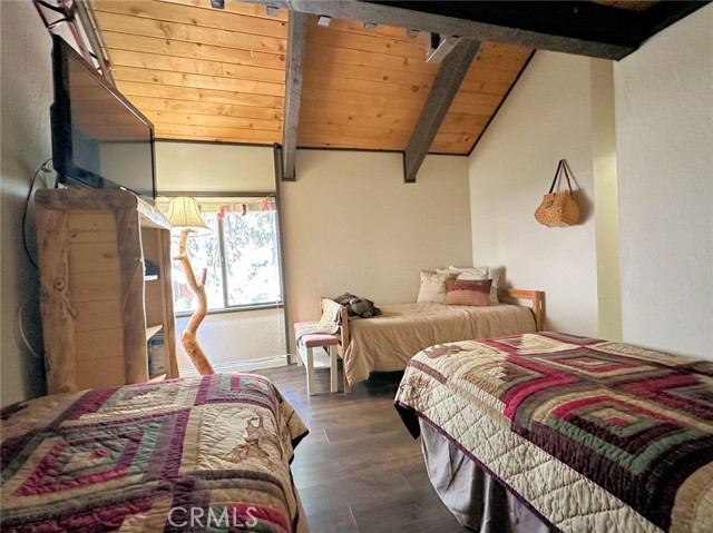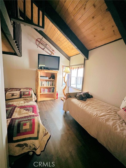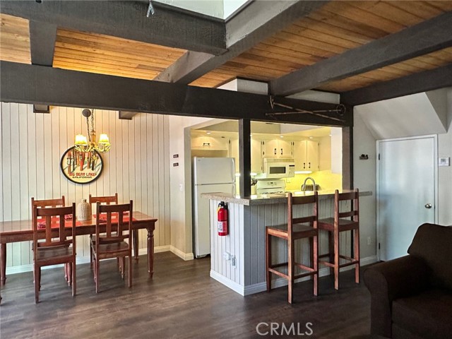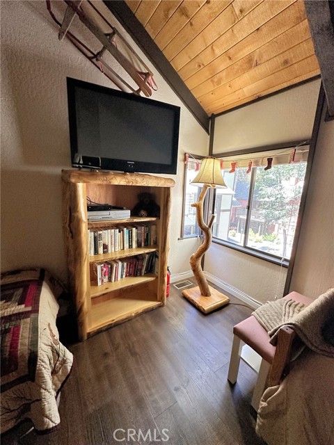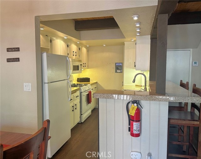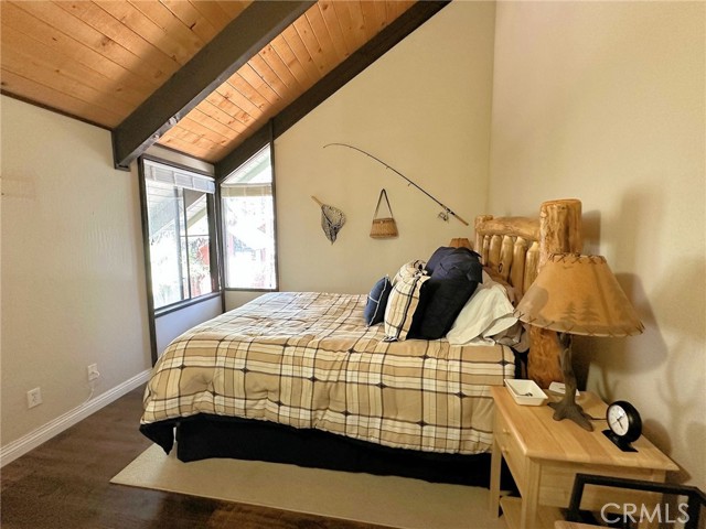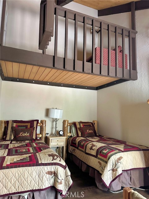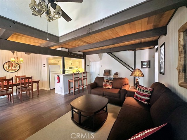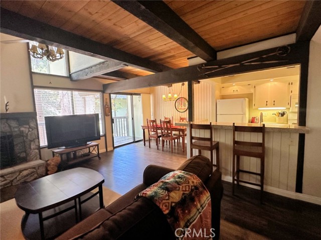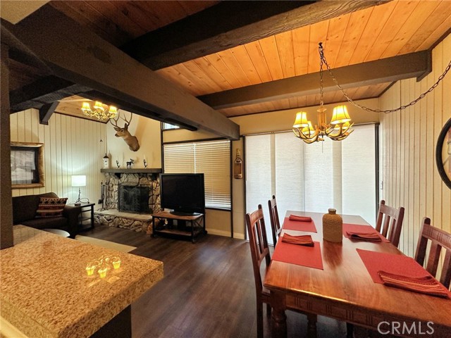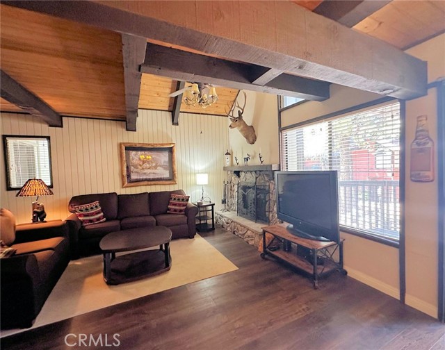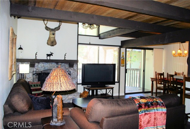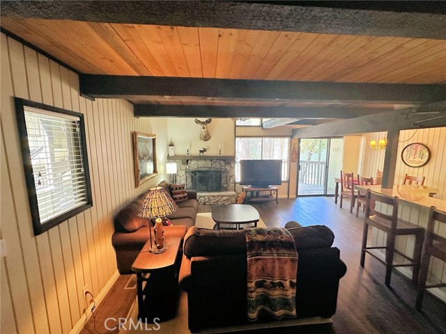LOCATION LOCATION LOCATION!!! Mountain living at its best! Skiing, Snowboarding, Mountain biking, hiking, as well as just relaxing are the best part of living in the Escape community. No driving necessary, just walk to the Snow Summit Resort where you will enjoy the many winter and summer activities. This home has been updated with comfort and enjoyment in mind. Great quality wood flooring throughout, granite counter tops, re-glazed bath enclosures, jetted tub in the master bath (to relax after a day of mountain activity), under kitchen cabinet lighting, washer and dryer, and central heating that was installed in Aug 2019 to name a few. A lot of attention to details in this home. The high beamed ceilings make the home feel open and airy with great views of the beautiful trees and blue sky from all of the rooms. As a bonus, unlike some homes in this complex, there is a loft in the second bedroom that has a full size pullout sofa bed. The second bedroom can sleep 5 people. The living room has a pull out sofa bed too. The sleeping accommodations allows for many people staying in the home or a plus for short term rentals. It is tastefully decorated and furnishings are included adding great value. Great storage inside and underneath the unit as well. The deck is large enough for large barbeques and outdoor furniture. Another plus is the short walking distance to the parking area. All of the grounds are very well maintained and great for leisure walks. Within short driving distance to all of the Big Bear Lake amenities. Truly a great property in a prime location. Onsite property manager. Turnkey ready! Must see to appreciate.