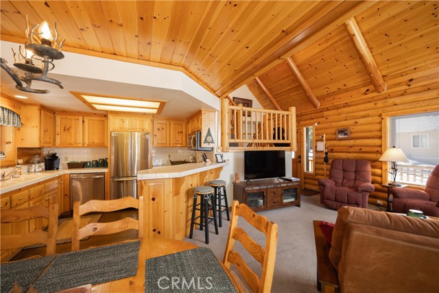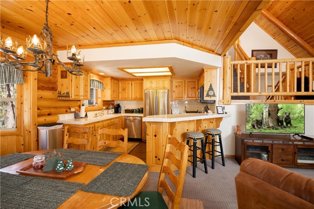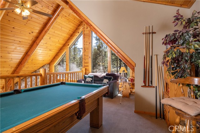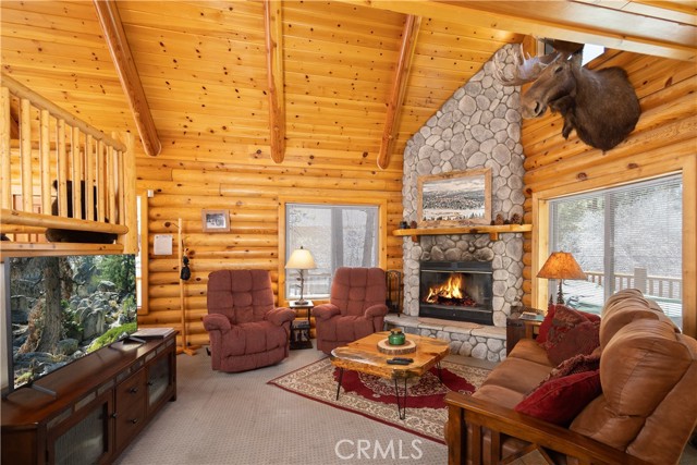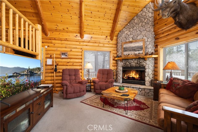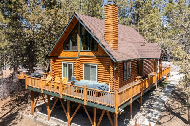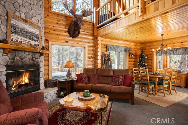 Fantastic Setting on this Full Log Home in a great Fox Farm Neighborhood! It features 3 bedrooms, plus a loft with pool table, a great Living area with a Stone fireplace, a Fully Equipped Kitchen, and a large outdoor Deck with Beautiful views of the Wonderful and Large Back Yard. Overall, the Home Offers a Perfect blend of Comfort and Mountain Charm for a Relaxing Getaway in Big Bear Lake.