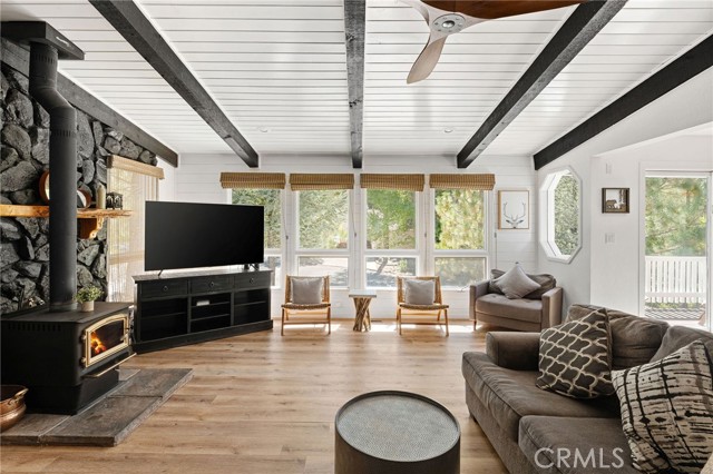 Fantastic & desirable Fox Farm cul-de-sac location for this recently renovated & roomy 4-bedroom beauty featuring modern amenities and a light & bright floorplan! This attractive turn-key opportunity has a great rental history & provides a very comfortable & popular mountain modern feel. Featuring newer appliances, vaulted ceilings with wooden beams, windows everywhere, and spacious entertaining areas both inside & out, you and your guest will have plenty of space to relax & enjoy this amazing mountain getaway. The Main level offers a remodeled kitchen, dining room, family room, bathroom, bedroom, laundry, and a generous master complete with a well appointed en-suite featuring a deep soaker tub, separate shower and walk-in closet. Access the large backyard, decking & inviting hot tub from either floor. Downstairs you’ll find 2 additional bedrooms, a full bathroom & garage access. Amenities include newer central heat, a tankless water heater, new washer & dryer, and tons of storage. Situated on over 10,000 sf and featuring plenty of parking with easy level access, you will love being centrally located near both ski resorts, shopping, dining, the lake & marinas, you have all that Big Bear has to offer close by! Make sure to put this one on your list!