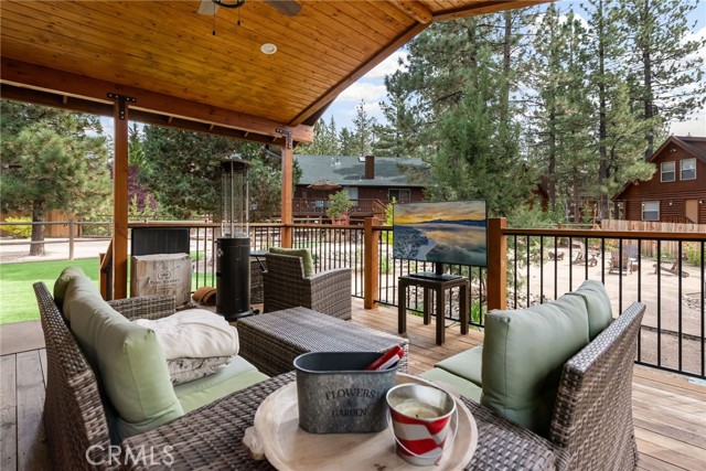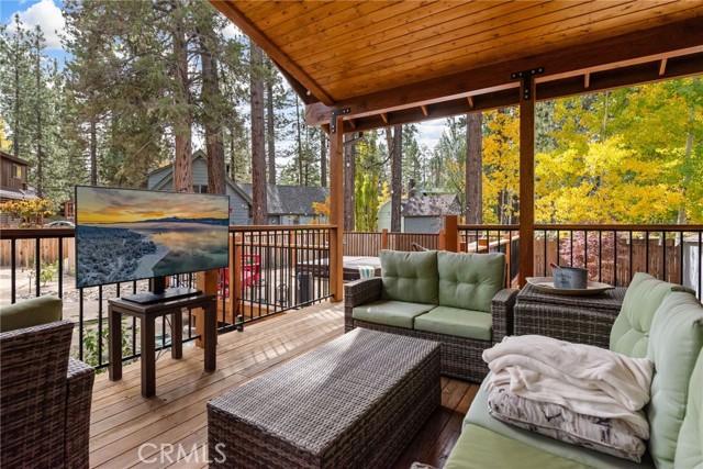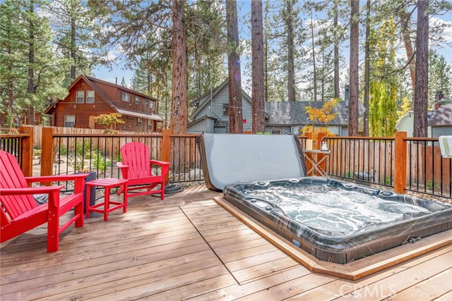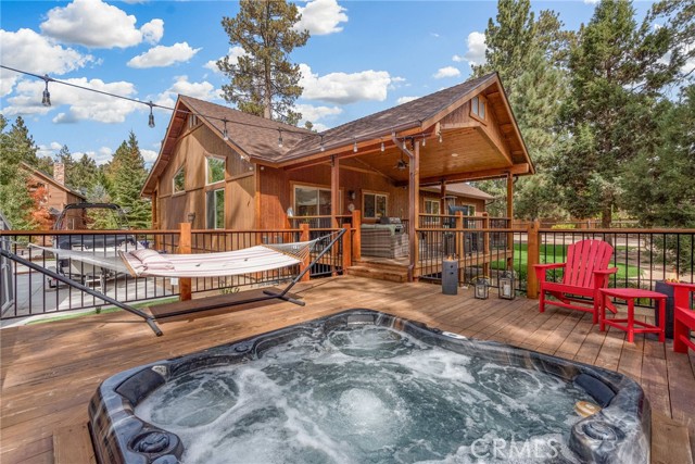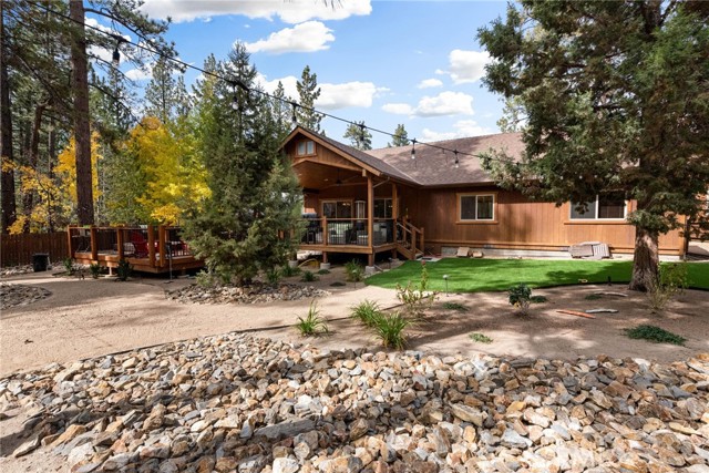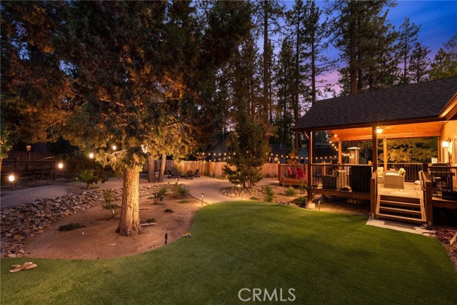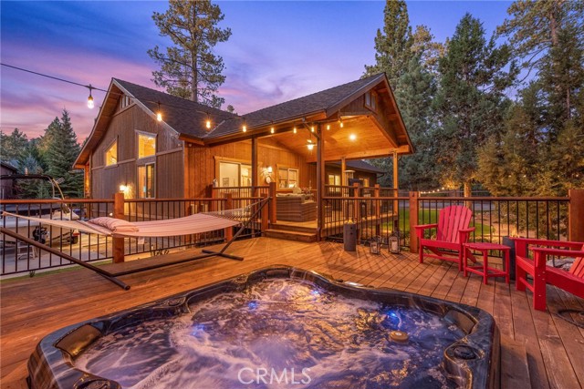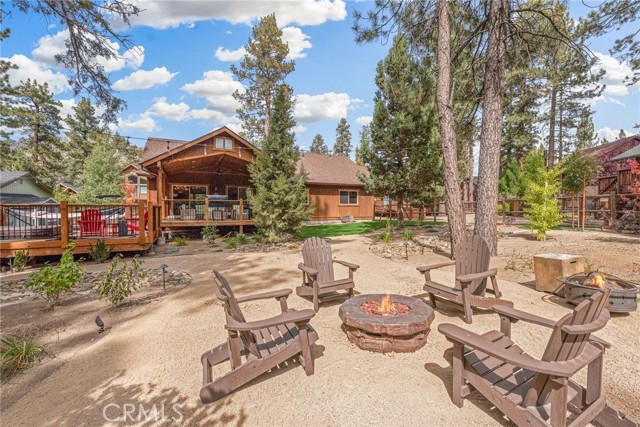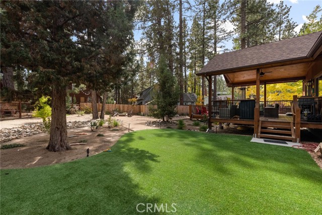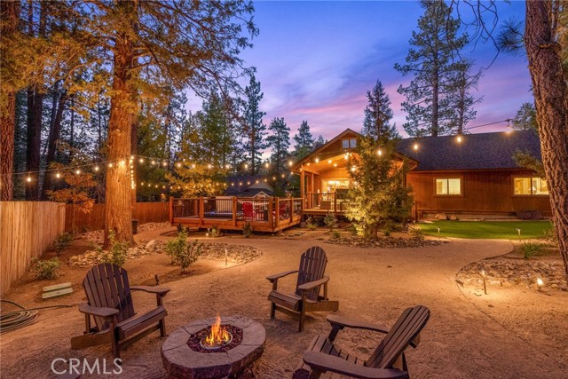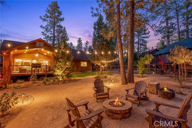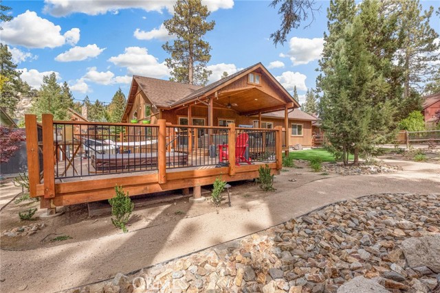 Situated at 42729 Gold Rush Dr in the sought-after Eagle Mountain Estates of Big Bear Lake, California, this meticulously crafted residence, constructed in 2020, offers a seamless blend of contemporary comfort and functionality. Spanning 1,988 sq. ft. across a single story on a generously sized 13,116 sq. ft. lot, this home comprises three bedrooms and three bathrooms. Elegance and modernity define the interior, enhanced by recent improvements and upgrades totaling well over $100K. Security is paramount, facilitated by a comprehensive camera system with six exterior cameras and an integrated alarm system. The property features an RV driveway with secured parking and is enclosed by fencing for added privacy. Beyond the confines of the interior, the outdoor space has been meticulously landscaped, including irrigation and drainage systems. The addition of a spa deck, coupled with landscape and yard lighting, elevates the property's aesthetic appeal and functionality. Entertaining is made effortless with an array of outdoor amenities, including a BBQ, large propane fire pit, and two small propane fire features. The patio and yard furnishings contribute to a well-appointed and comfortable outdoor living space. Internally, the residence boasts 2-inch wood blinds throughout and a custom TV wall unit entertainment system. Every bedroom is equipped with wall-mounted TVs, and an additional TV is strategically placed on the exterior patio deck. For electric vehicle enthusiasts, a garage-installed EV car charger is provided. Practical enhancements extend to the bathrooms, where each is equipped with shower and tub enclosures. The property is offered fully furnished, showcasing a comprehensive selection of furnishings and decorations. Additionally, electrical dimmer switches have been installed throughout, providing customizable ambient lighting. This property stands as a testament to meticulous design, modern conveniences, and security, making it an exceptional residence within the Eagle Mountain Estates enclave of Big Bear Lake.