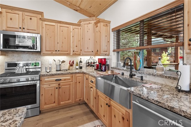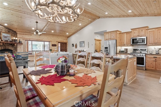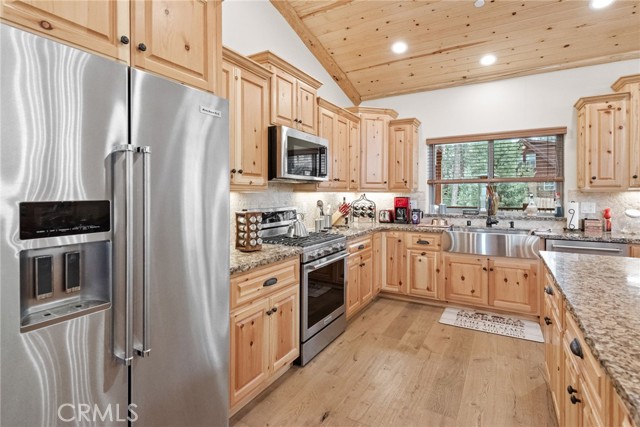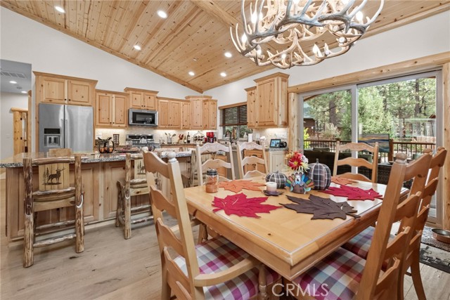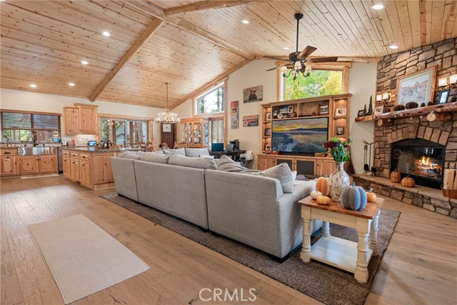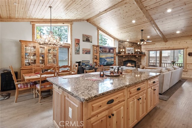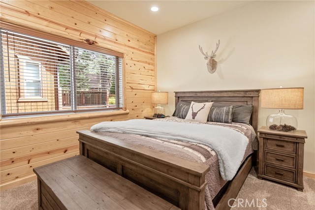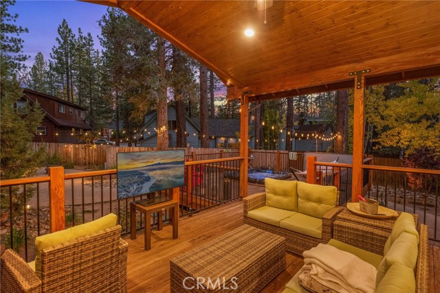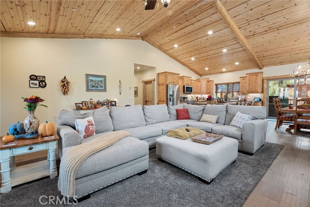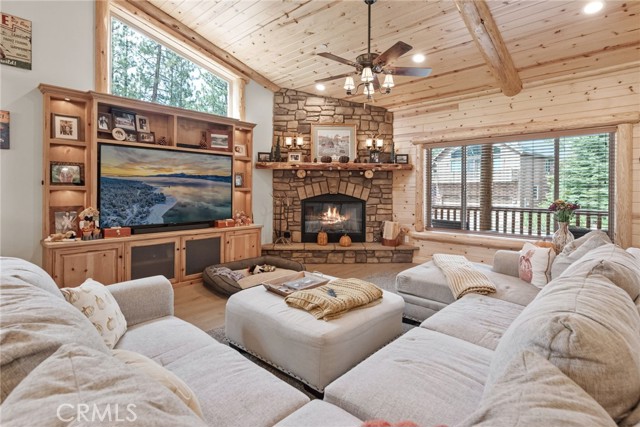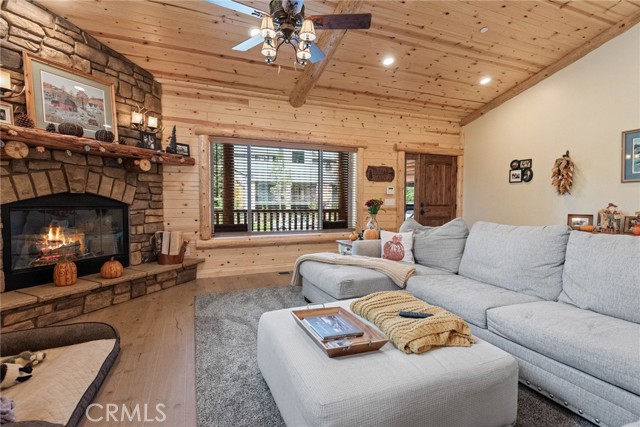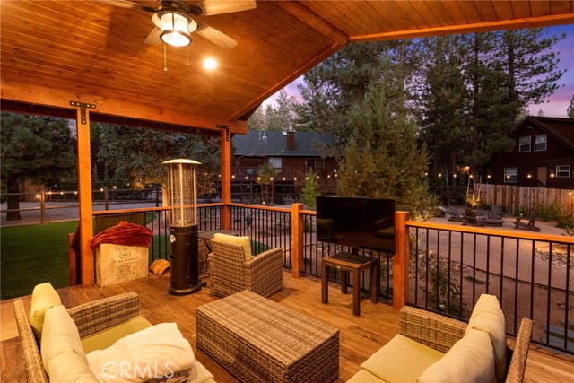 Situated at 42729 Gold Rush Dr in the sought-after Eagle Mountain Estates of Big Bear Lake, California, this meticulously crafted residence, constructed in 2020, offers a seamless blend of contemporary comfort and functionality. Spanning 1,988 sq. ft. across a single story on a generously sized 13,116 sq. ft. lot, this home comprises three bedrooms and three bathrooms. Elegance and modernity define the interior, enhanced by recent improvements and upgrades totaling well over $100K. Security is paramount, facilitated by a comprehensive camera system with six exterior cameras and an integrated alarm system. The property features an RV driveway with secured parking and is enclosed by fencing for added privacy. Beyond the confines of the interior, the outdoor space has been meticulously landscaped, including irrigation and drainage systems. The addition of a spa deck, coupled with landscape and yard lighting, elevates the property's aesthetic appeal and functionality. Entertaining is made effortless with an array of outdoor amenities, including a BBQ, large propane fire pit, and two small propane fire features. The patio and yard furnishings contribute to a well-appointed and comfortable outdoor living space. Internally, the residence boasts 2-inch wood blinds throughout and a custom TV wall unit entertainment system. Every bedroom is equipped with wall-mounted TVs, and an additional TV is strategically placed on the exterior patio deck. For electric vehicle enthusiasts, a garage-installed EV car charger is provided. Practical enhancements extend to the bathrooms, where each is equipped with shower and tub enclosures. The property is offered fully furnished, showcasing a comprehensive selection of furnishings and decorations. Additionally, electrical dimmer switches have been installed throughout, providing customizable ambient lighting. This property stands as a testament to meticulous design, modern conveniences, and security, making it an exceptional residence within the Eagle Mountain Estates enclave of Big Bear Lake.