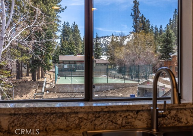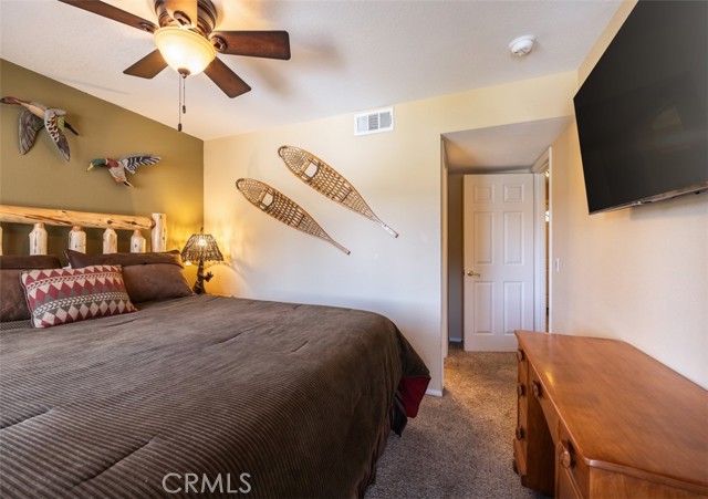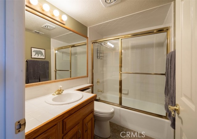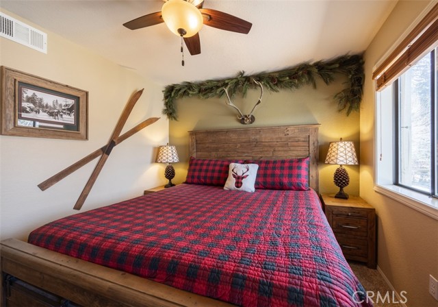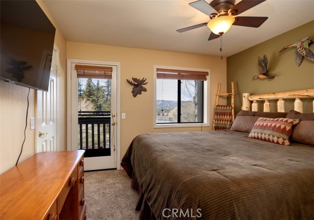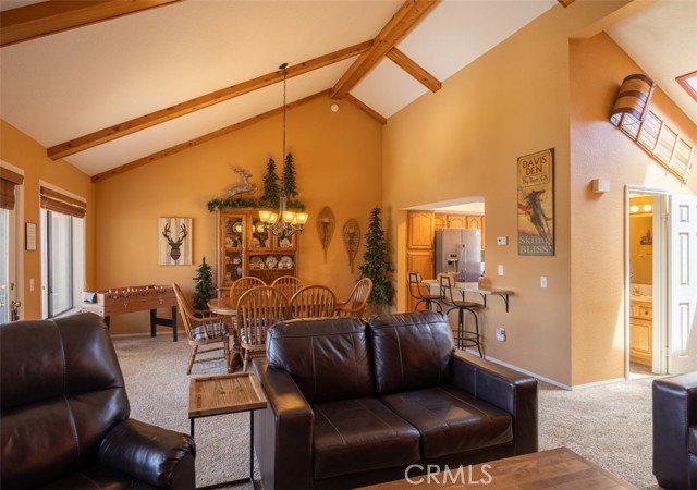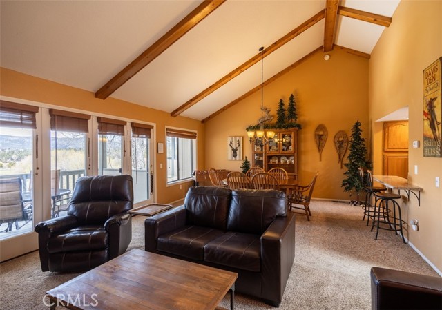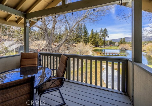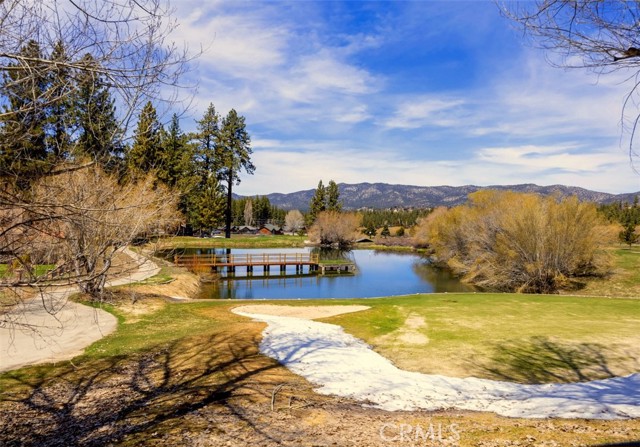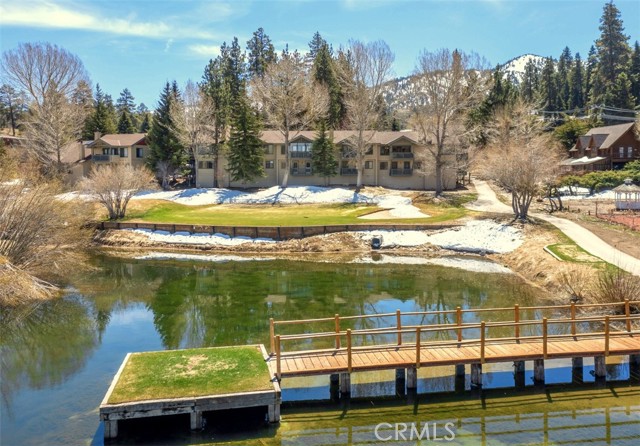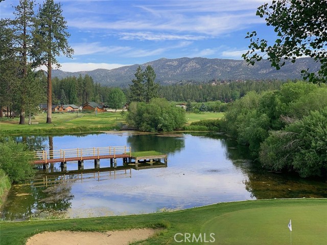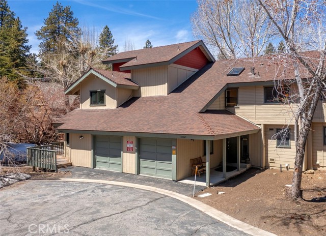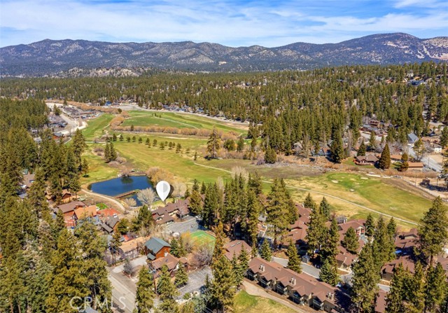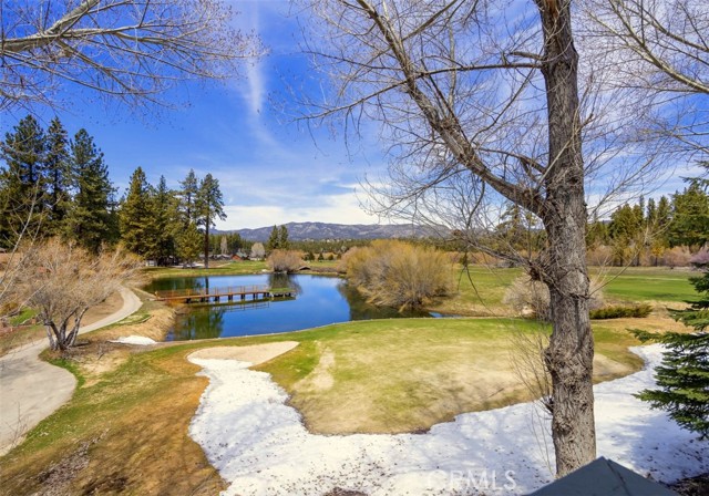 Spectacular views of the golf course and ski slope!! Located just below Bear Mountain Ski Resort, on the 8th green of the golf course in Bear Meadows condo complex, this attractive, turnkey condo has undoubtedly the best views in the entire complex. Open living area upstairs has high-vaulted ceilings, brick FP, 1/2 bath, skylight, large dining area and a private deck to capture uninterrupted, picturesque views all year-round, including amazing sunrise and sunset views! Upgraded kitchen has granite counters, stainless steel appliances, recessed lighting, breakfast bar and scenic view of Bear Mountain. Welcoming entry way downstairs leads to 2 master suites with their own balcony, laundry room, ample storage and entrance to garage. This well-maintained complex has community tennis courts, newer spa and an updated clubhouse with rec room and gym. The cul-de-sac street and easy access to community facilities are just a couple more valuable amenities, making this an exceptional value. And the HOA now offers a flat rate fee of $75 for your premium cable and internet package, which can be added to the monthly HOA fee. Excellent opportunity for a full time or vacation home. Walking distance to Bear Mountain, Alpine Zoo, shopping and restaurants. Currently approved and operating as a successful vacation rental. Comes fully furnished and ready to move in. Don't miss out on this Big Bear treasure!