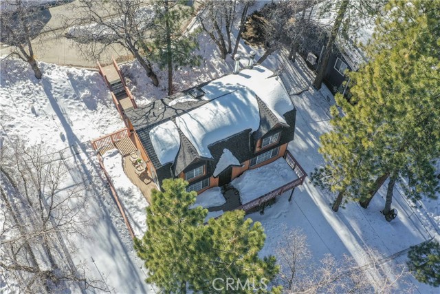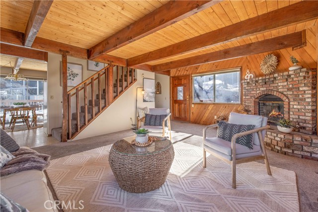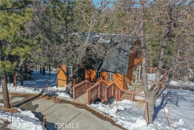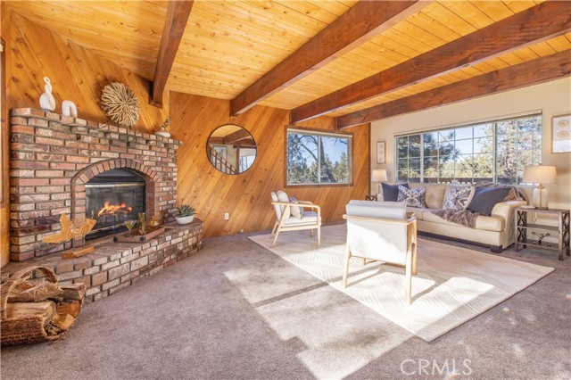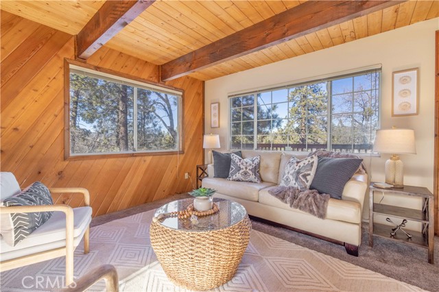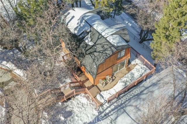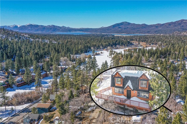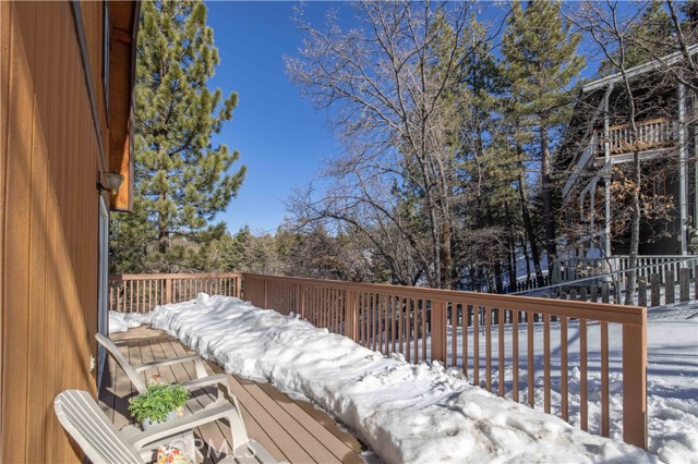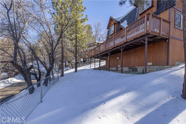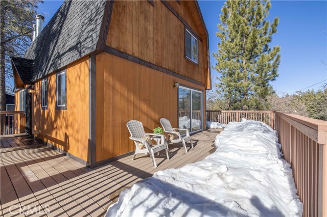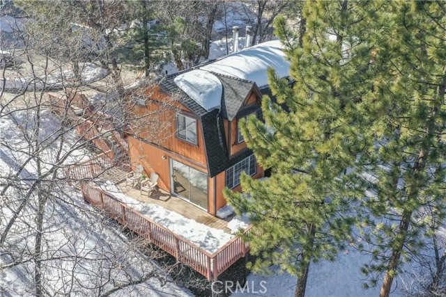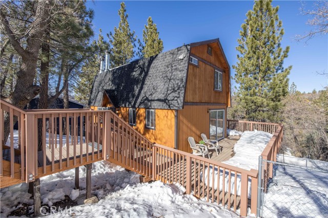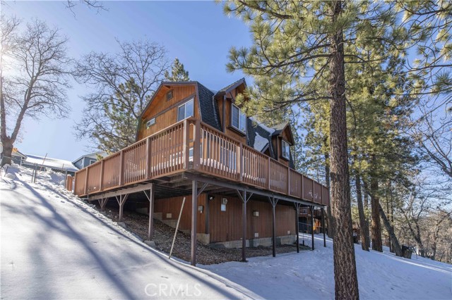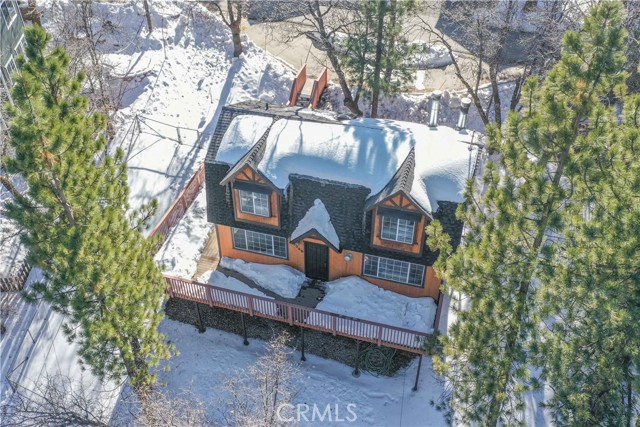 Location, Location, Location!!!! Light and bright 2 bedroom 2 bath gambrel in the sought-after upper Moonridge neighborhood of Big Bear Lake! Beamed ceilings and Two brick fireplaces add to the ambiance of this charming cabin. An expansive lot, fully fenced with an amazing wrap-around composite deck makes this cabin even more appealing! Don't miss the storage area underneath the property, with so much potential.