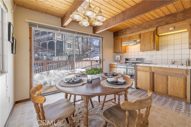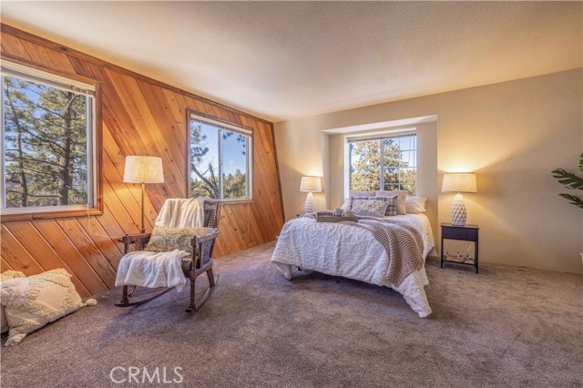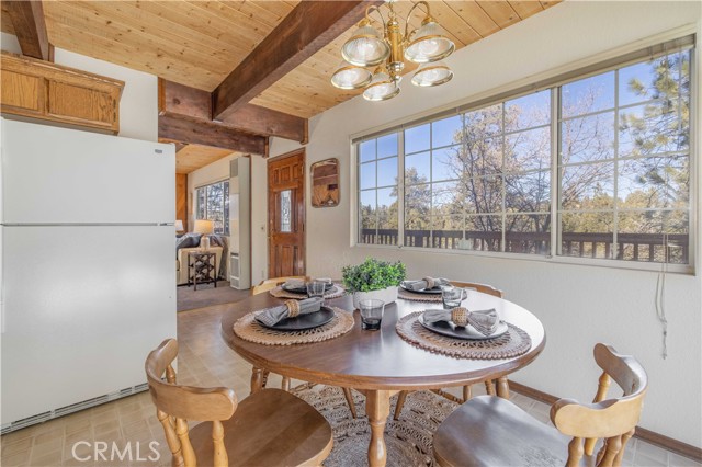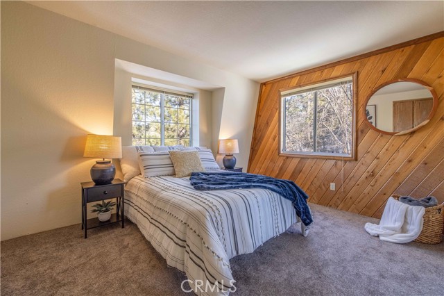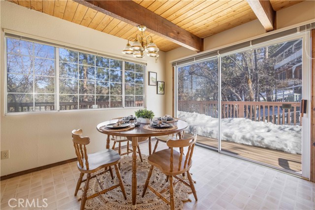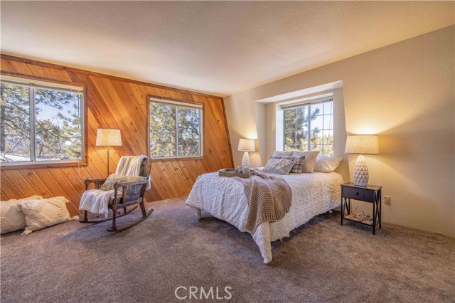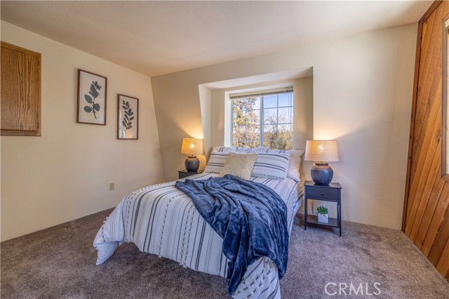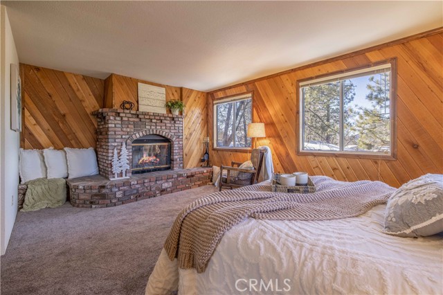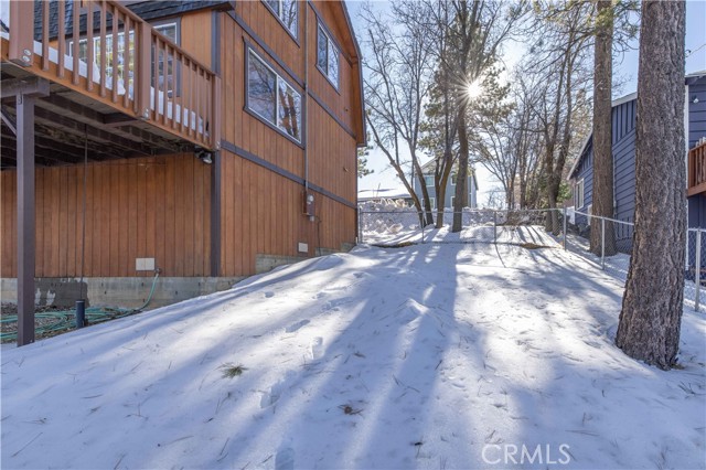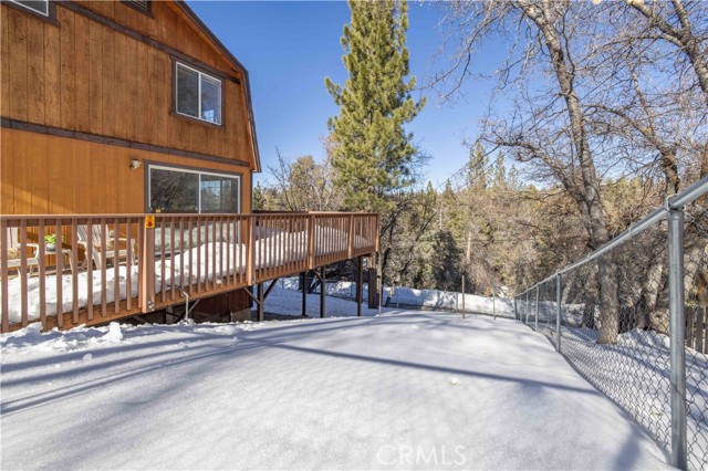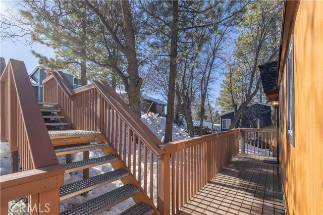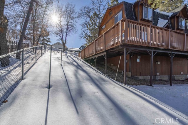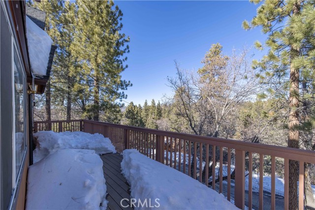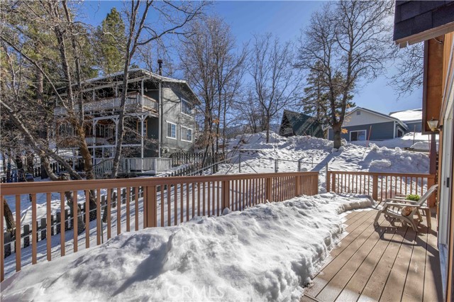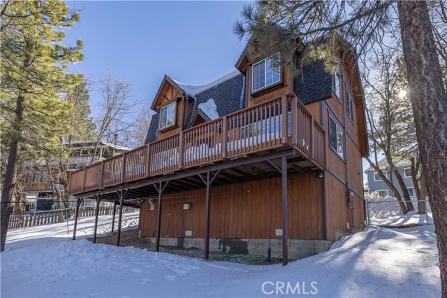 Location, Location, Location!!!! Light and bright 2 bedroom 2 bath gambrel in the sought-after upper Moonridge neighborhood of Big Bear Lake! Beamed ceilings and Two brick fireplaces add to the ambiance of this charming cabin. An expansive lot, fully fenced with an amazing wrap-around composite deck makes this cabin even more appealing! Don't miss the storage area underneath the property, with so much potential.