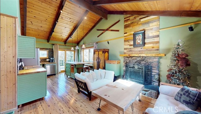 Nestled in the serene embrace of Big Bear’s majestic pines, this charming cabin offers an idyllic mountain retreat. The residence exudes a warm, cabin-style aesthetic for your everyday or vacation home living. The home features Anderson dual-pane windows with custom-colored anodized aluminum exteriors and pine interiors, enhancing its rustic appeal while ensuring energy efficiency. Australian cypress wood flooring flows throughout, paired with live edge casings for a touch of artisan craftsmanship. The newly installed glass door shower enclosure and custom built-ins marry convenience with cabin charm. As you step outside onto the spacious deck, you'll enjoy peek-a-boo views of the ski slopes and lake, promising endless moments of tranquility amidst the soaring pines, setting the stage for a life well-lived in the heart of the mountains.