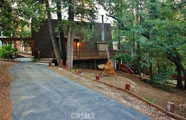 The Sellers have moved too far away to use the pristine cabin they built in the 1970's and have loved it all these years. Pride of ownership screams to anyone who visits. This gambrel was placed perfectly on a huge lot, with super easy access, but the living space is up high nestled in the surrounding trees which gives it the feeling of a private tree house. The kitchen was updated a while back and the exterior was recently painted. There are so many places in this cabin to hang out in nature and it's close to hiking trails. The home is located fairly close to Moonridge Rd. so it's pretty easy to get to and the long asphalt driveway gives you plenty of parking. It's being sold fully furnished.