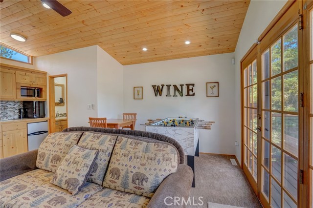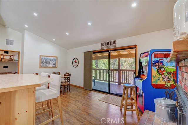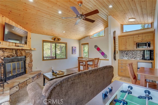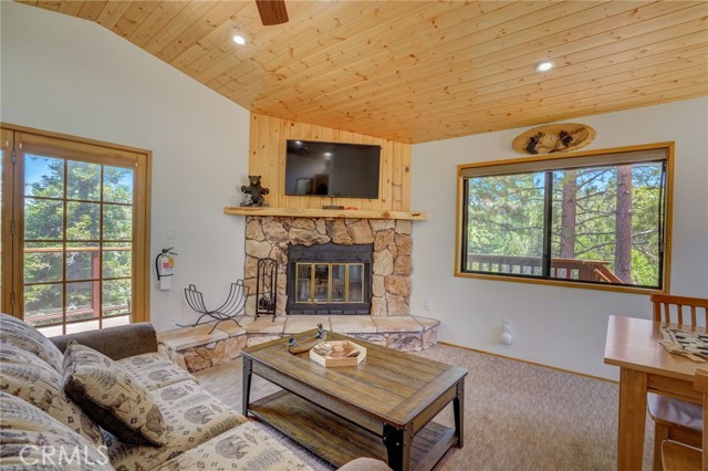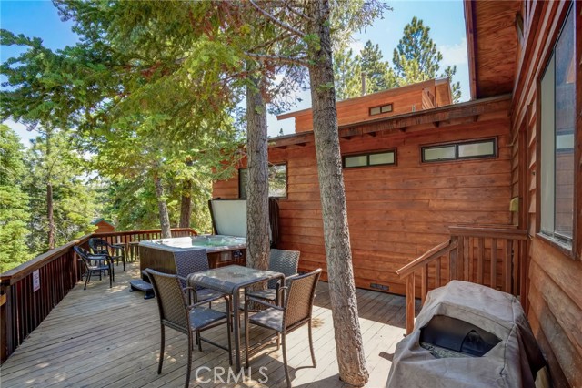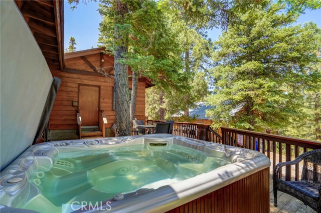 Discover your idyllic mountain retreat in the serene woods of Big Bear, mere steps away from the slopes of the renowned Big Bear Mountain Resort! Nestled within the highly sought-after Moonridge community, where rustic charm meets modern upgrades. The home has been thoughtfully remodeled and comes fully furnished. With a newer roof, newer driveway, and expanded decks in the front and off the kitchen, you'll find ample space for outdoor relaxation and entertaining. A spacious balcony on the second floor offers breathtaking views and adds a touch of sophistication to this charming retreat. Inside, you'll be greeted by an inviting ambiance, enhanced by a welcoming front door and newer sliding doors that bathe the living spaces in natural light. Enjoy the convenience of a tankless water heater, ensuring a continuous supply of warmth, while the remodeled bathrooms and updated kitchen with stainless steel appliances add a touch of modern luxury. Throughout the home, newer flooring and elegant lighting create an atmosphere of warmth and comfort. Ceiling fans and recessed lighting provide year-round convenience and coziness. The exterior and deck have been lovingly re-finished, displaying the cabin's well-maintained and inviting appeal. For moments of relaxation and rejuvenation, indulge in the newly added spa, perfect for unwinding after a day of skiing or hiking. One of the most versatile features awaits on the second floor—an enchanting loft complete with a fireplace, wet bar, and a bathroom. This space offers endless possibilities, ideal as a fourth bedroom, game room, or a second master suite, tailored to your desires. This property presents a fantastic opportunity for investors and homeowners alike, with approval for short-term rentals by the city of Big Bear. The potential for rental income as an Airbnb adds an appealing aspect for those seeking to maximize their investment. Don't miss this rare chance to own a cabin in the heart of Big Bear's forested wonderland. Embrace the tranquil mountain lifestyle, with the ski resort nearby. Whether you seek a private escape or an investment, this move-in ready cabin offers it all and more! Secure your place in this picturesque mountain paradise today.
