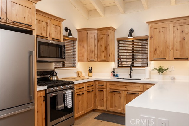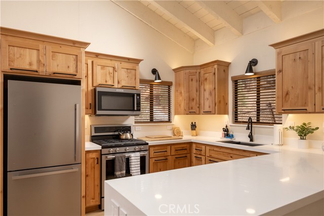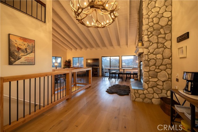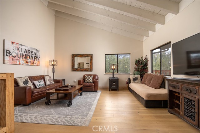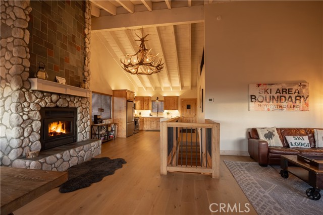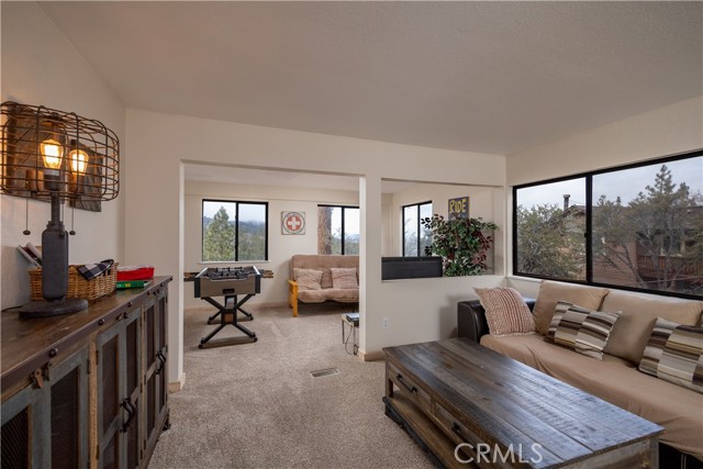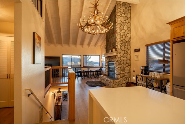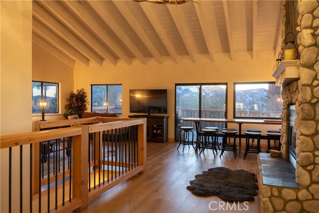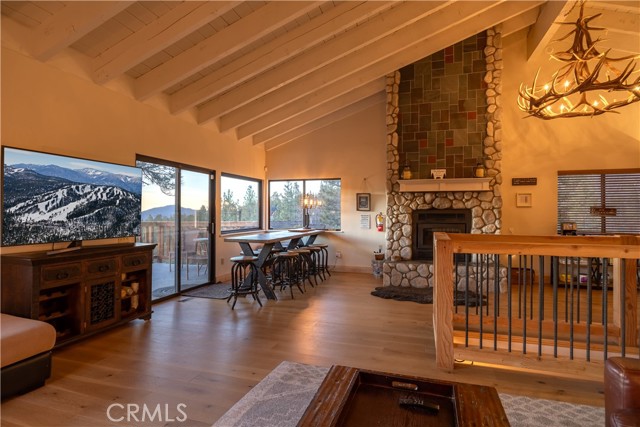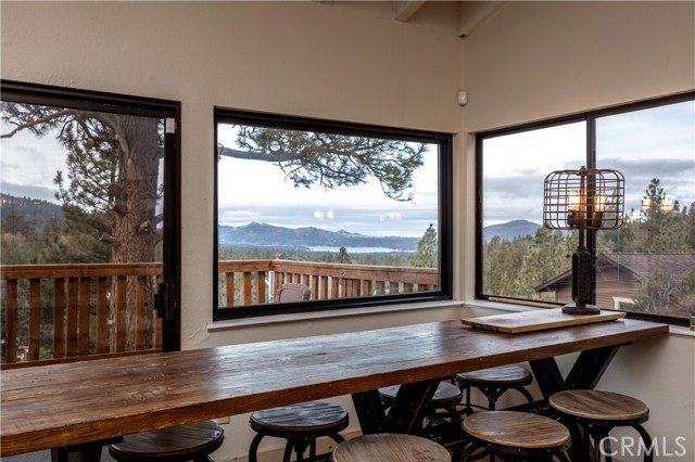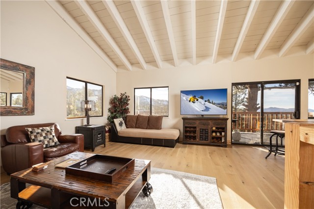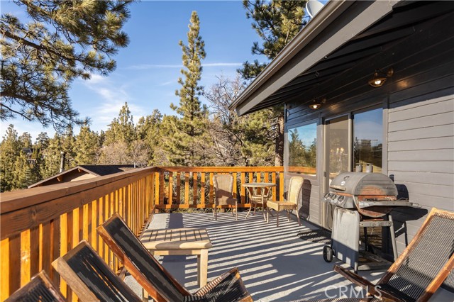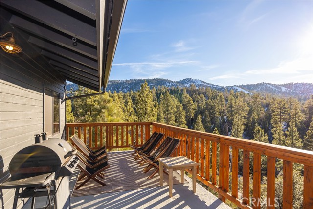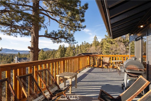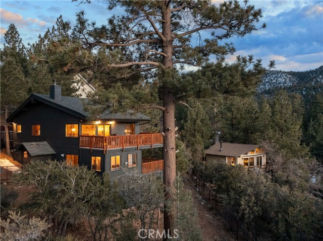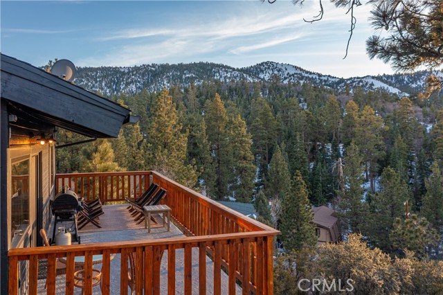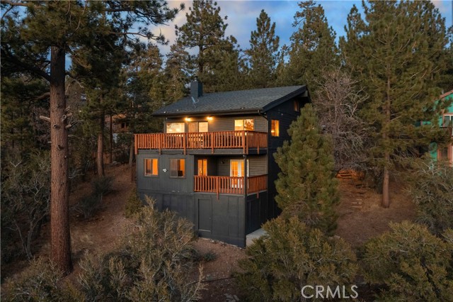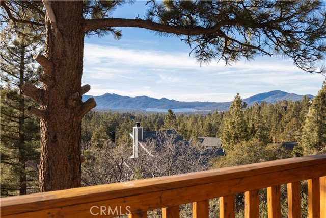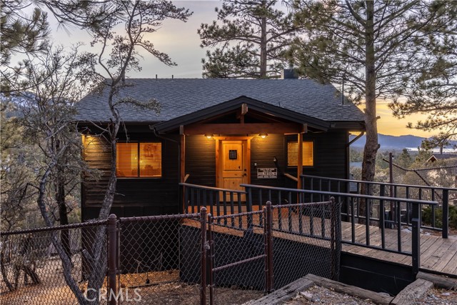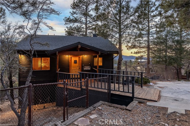 Welcome to "Eagle Peak Cabin" a rare offering in the Big Bear market with forever ski slope, lake & sunset 180 degree panoramic views. Second home or short term rental ready, you decide! This cabin has been tastefully remodeled & updated with a wonderful floor plan with vaulted ceilings. Your mountain entertaining dreams will become a reality with open living with easy access to the large upper deck to take in all of the views and mountain air, but it doesn't stop there.... This home comes with a large lot with a dog run that is fully fenced in for your precious canine family members & a large fenced in backyard. The owner's suite has french doors that lead to a view deck. The downstairs area offers additional bedrooms with another cozy living space to cozy up and make those lifetime memories you came to the mountains for.