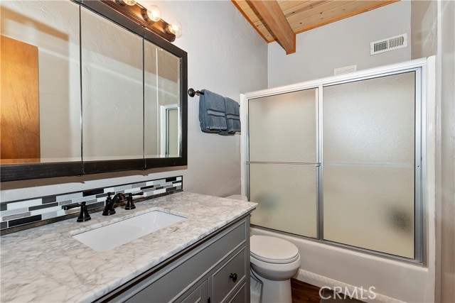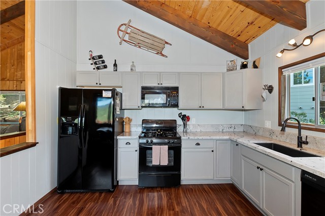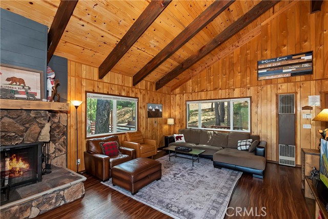 Pulling up you are going to think to yourself, "What a cute little cabin"~When you step through the front door into the living room, your breath will be taken away by the ski slope views staring you down through the sliding glass doors~Next, you will look up at the soaring T&G ceilings~30 seconds in and you already know that this is the one you have been looking for~As you are thinking this, you walk out to the huge back deck and are excited to see, you have lake views too! After spending time on the deck, loving the views more and more with each passing minute, you decide it is time to see what the rest of the cabin looks like ~To your delight you see that the owners have already done the hard work for you~The kitchen has been remodeled with granite counter tops, paint and wood grain laminate flooring~The newer wood grain laminate flooring extends throughout the top floor~Then you realize that the fireplace is wood burning and you picture yourself and your loved ones relaxing together after a day of play on the ski slopes, warming up in front of the fire, smores anyone? Downstairs you are pleasantly surprised to find not only, two bedrooms and a remodeled bathroom, but a 3rd huge bedroom that is currently doubling as a game room and bedroom~Then you think to yourself, there's ski slope views from here too! YES, there is!~They have also made other improvements such as replacing the water main to the street, added heat ducting downstairs, deck railing brought to code and more!