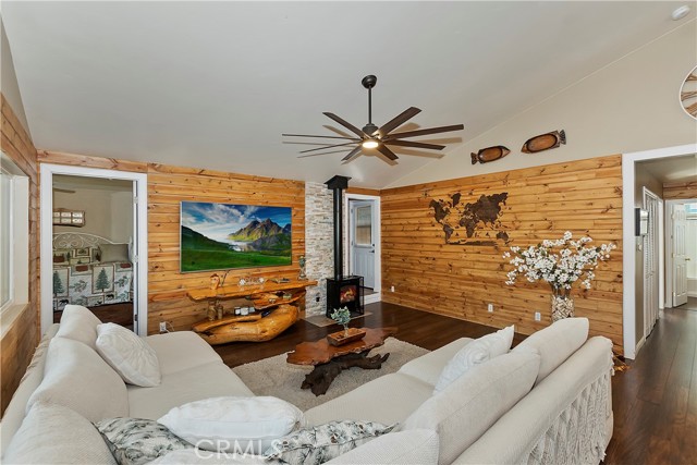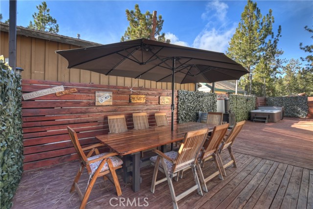 JUST MOMENTS AWAY FROM HOLLOWAYS MARINA, NATIONAL FOREST TRAILS, ALPINE SLIDE AND THE VILLAGE FROM THIS CENTRALLY LOCATED GEM BOASTING LOTS OF UPGRADES ~ This fantastic mountain home has a blend of Big Bear charm & modern comfort, offering an inviting open floor plan with a fully equipped kitchen with hickory cabinets, an island and pantry, and a spacious living room with T&G walls ~ Updated wood engineered flooring throughout, fresh interior and exterior paint, high-performance platinum Rheem tankless water heater complemented by a salt-free, coconut-based soft water filter system ~ This newer home features 2 newly built bedrooms alongside 2 master suites, totaling 4 bedrooms and 3 baths ~ Both master suites offer sliders leading to the back deck ~ Entertain or simply unwind on the private reinforced deck, offering ample space for all your loved ones to gather for bbqs or to soak in the hot tub after a day on the slopes ~ One car attached garage plus room on the side of the house to accommodate a 20ft boat or RV ~ Fully cleaned out build-up area, primed for storage, hobbies, or a personalized retreat, complete with electricity and water connections ~ Great attention to detail on this beautiful home!